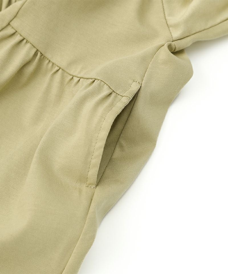 ■カラー展開:ベージュ/オレンジ ※お名前タグ付き ※前にポケットがあります。 モデル身長:110cm / 着用サイズ:110size ※画面上の色はブラウザや設定により、実物とは異なる場合がございます。