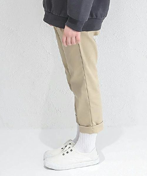 ■カラー展開:ベージュ ※前と後ろにポケットがあります。 モデル身長 : 124cm / 着用サイズ : 120size ※画面上の色はブラウザや設定により、実物とは異なる場合がございます。