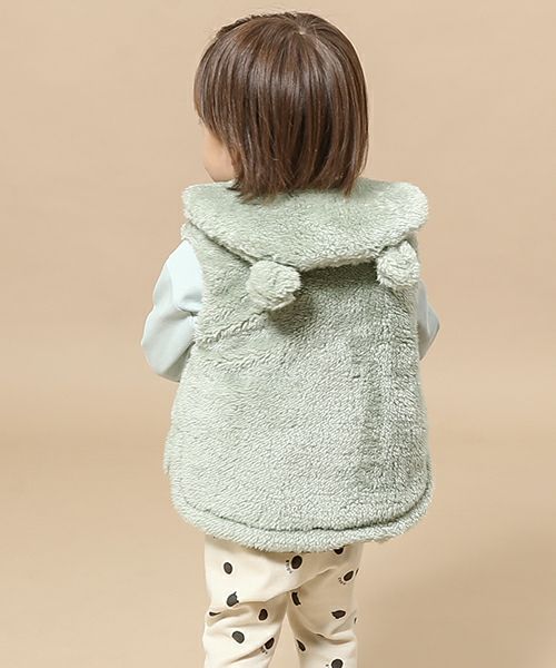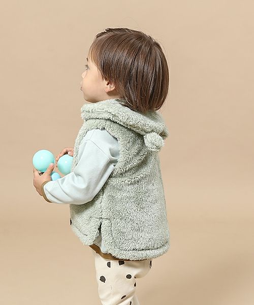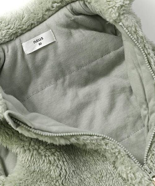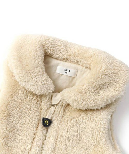 ■ブランド n.o.u.s ■アイテム ベスト ■素材 表地・中綿/ポリエステル100% 裏地・ファスナー紐/綿100% くまモチーフ/アクリル100% ボア×天竺 ■サイズ 70/80/90