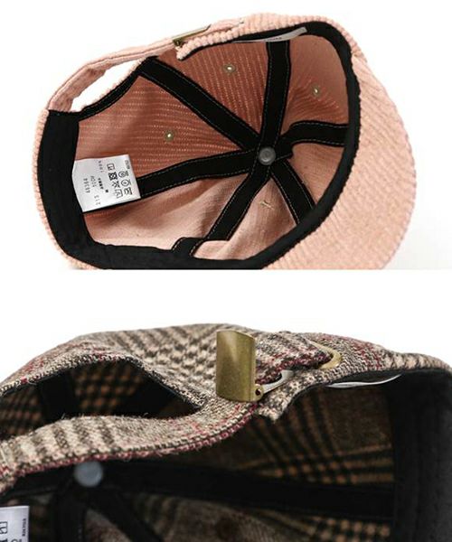 ■ブランド n.o.u.s ■アイテム 帽子 ■素材 グレー…チェック柄部分/ポリエステル55%・ウール45% コーデュロイ部分/綿97%・ポリウレタン3% ピンク…綿100% チェック布帛×コール天 ■サイズ 48/50/52/54/56