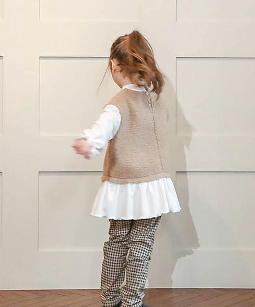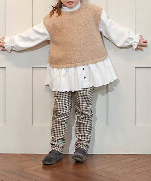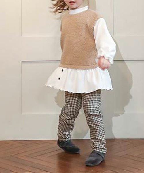 ■カラー展開:クロ/ベージュ モデル身長:107cm / 着用サイズ:110size ※全サイズ背中あき(ボタン) ※画面上の色はブラウザや設定により、実物とは異なる場合がございます。