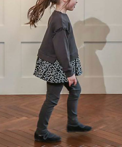 ■カラー展開:チャコール/パープル モデル身長:107cm / 着用サイズ:110size ※後ろにポケットがあります。 ※画面上の色はブラウザや設定により、実物とは異なる場合がございます。