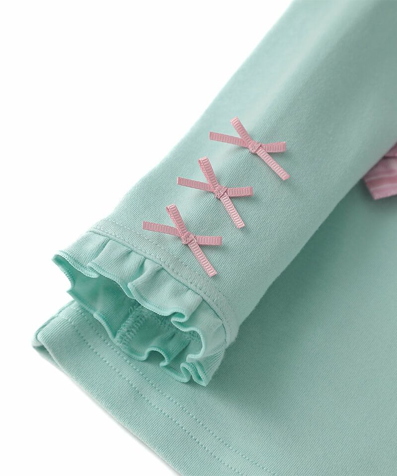 ■素材 本体/綿95%・ポリウレタン5% 前身頃リボン部分/綿100% 袖口リボン部分/ポリエステル100% アップリケ部分/ポリエステル94%・ポリウレタン6%