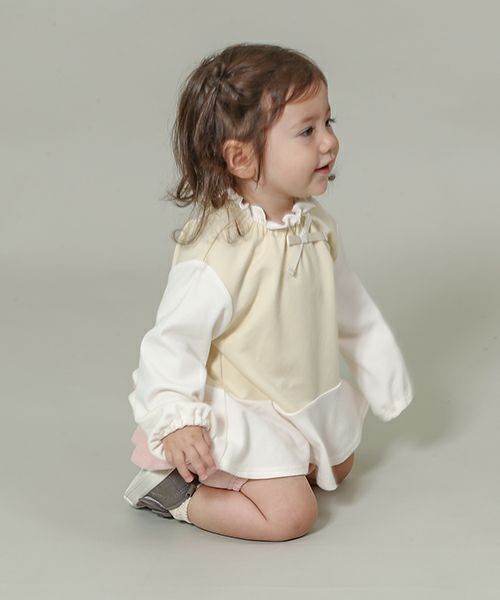 ■素材 前後見頃部分/綿96%・ポリウレタン4% 袖・フリル布部分/綿100%