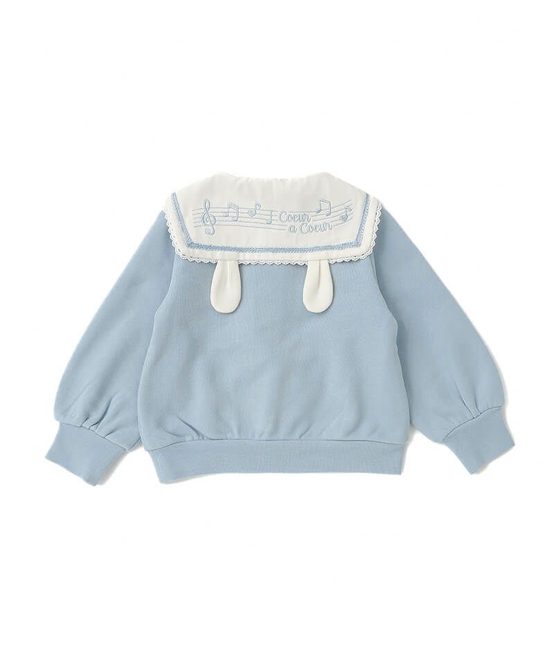 うさみみ×セーラーカラーのデザインがクーラクールらしい世界観たっぷりのプルオーバー。フロントには音符とうさぎちゃんのアップリケ刺繍をちょこんと添え、バックには音楽が聞こえてきそうな音符ラインとロゴ刺繍をあしらいました♪素材はコットン100%の厚手の裏毛素材で寒い季節にもぴったり。袖口と裾はリブ仕様でふんわりシルエットながら動きやすさもばっちり◎どんなボトムスとも合わせやすくおでかけにもデイリー使いにも大活躍の1枚です♪