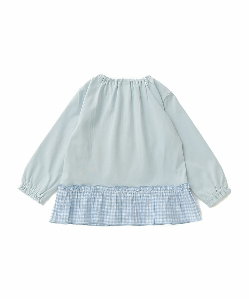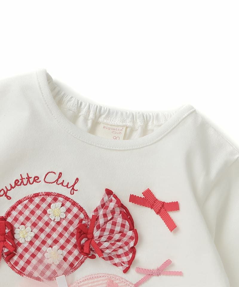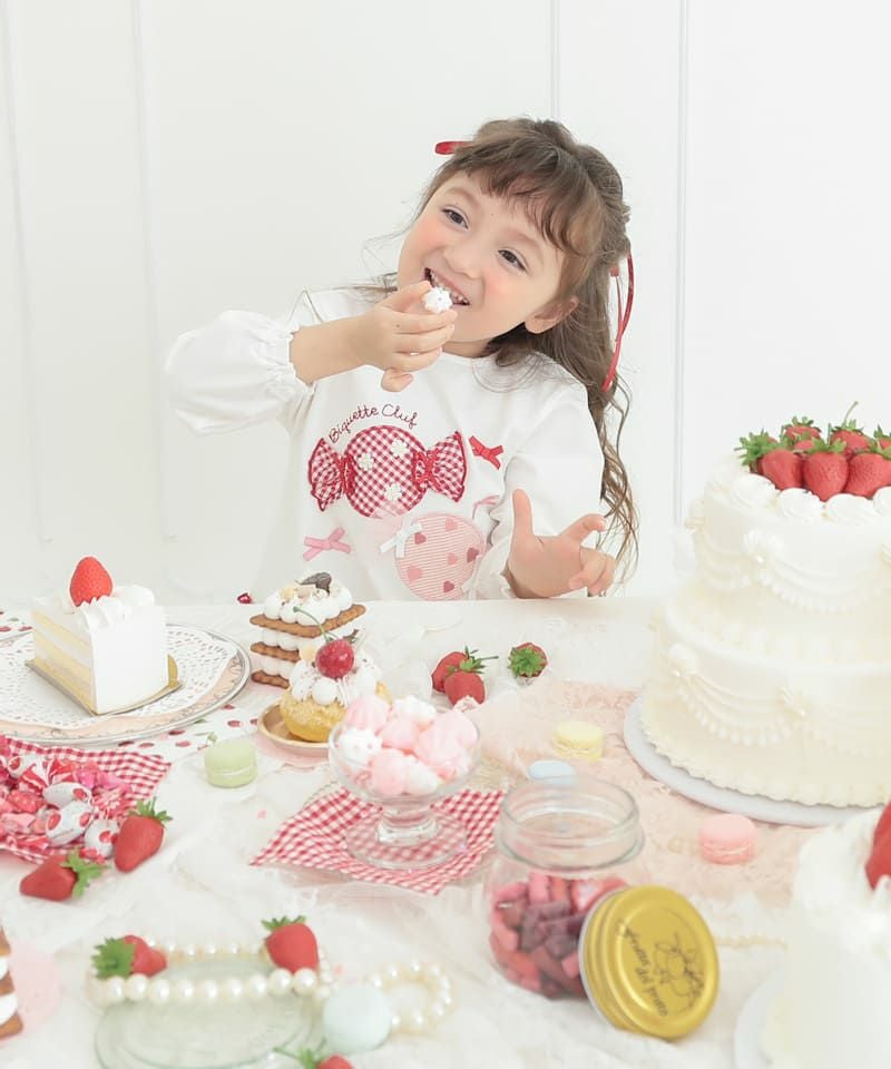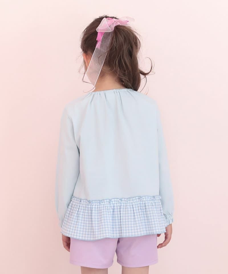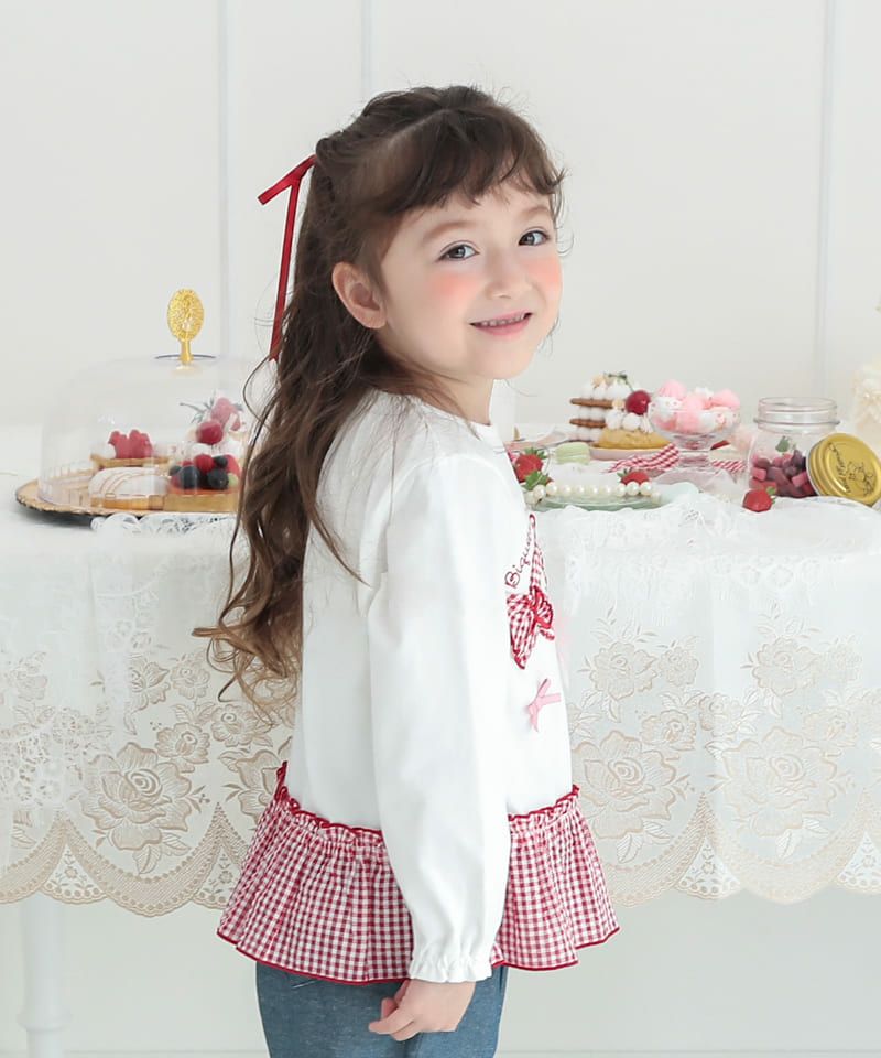 お花にリボン、チュールなど女の子の大好きが詰まったキャンディモチーフAラインTシャツ♪ギンガムチェックのフリルが愛らしさたっぷり♪お袖はアウターが羽織りやすいプレーンなシルエットなので、重ね着の時期も使い勝手の良いアイテムです。