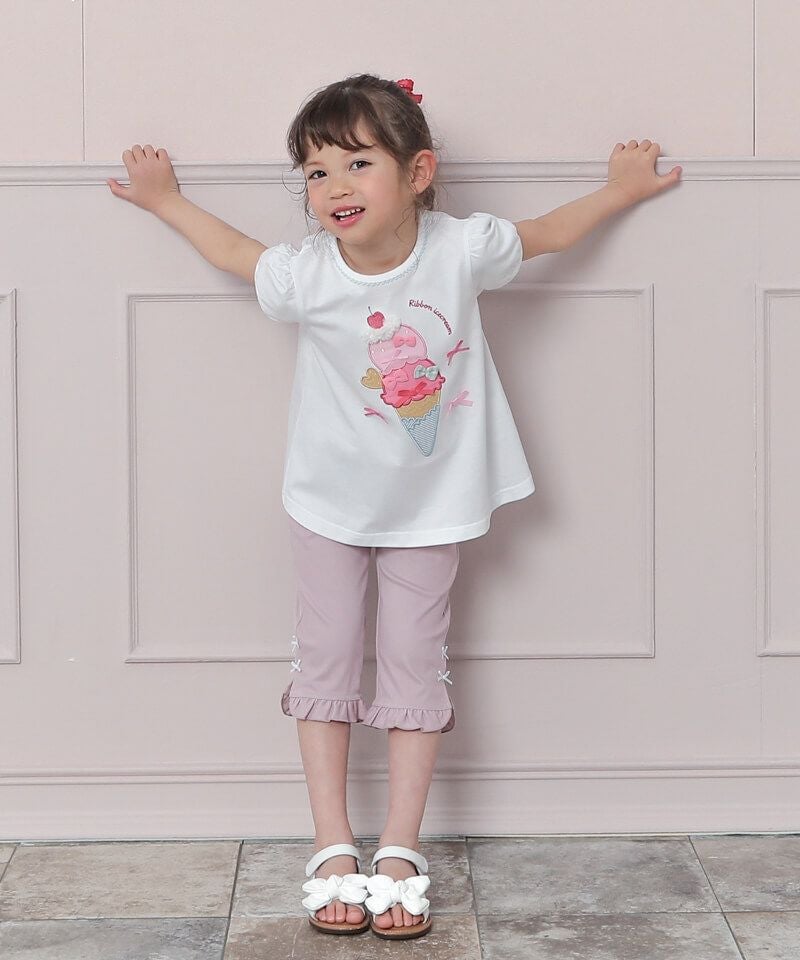 モデル身長:111cm / 着用サイズ:110size/オフホワイト・ピンク