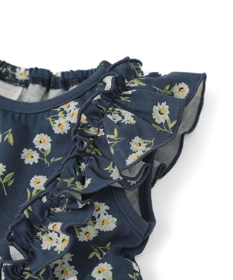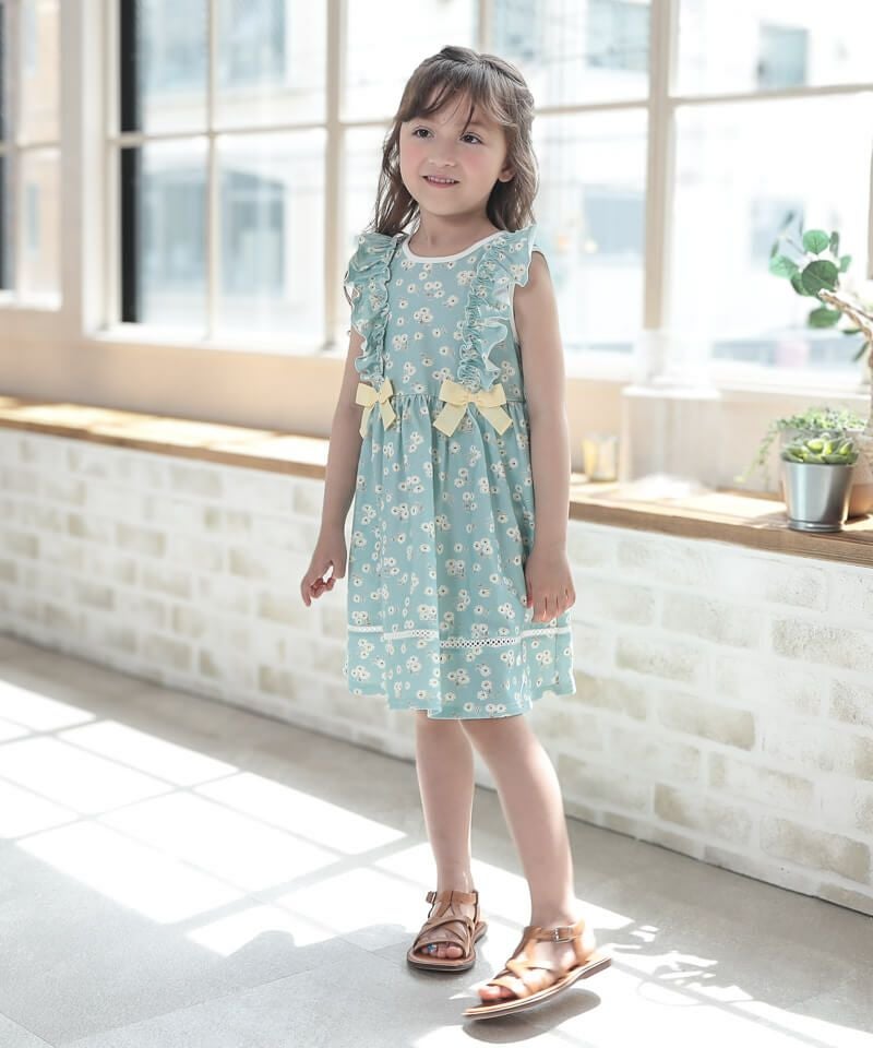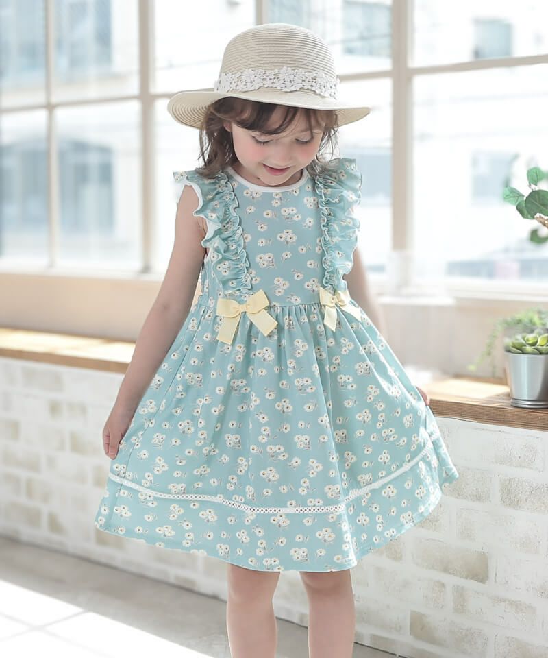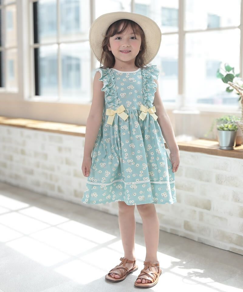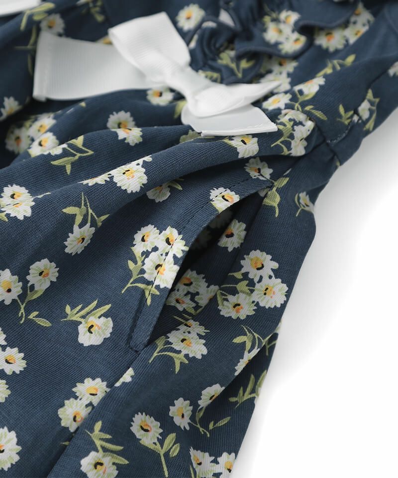 1枚で存在感抜群な花柄ワンピースです♪キュッと絞ったウエストとスカートの広がりがとっても可愛いシルエット。ネックとウエストがゴム仕様なので脱ぎ着も楽ちん♪主役ワンピなのに使いやすいところもおすすめなワンピースです!