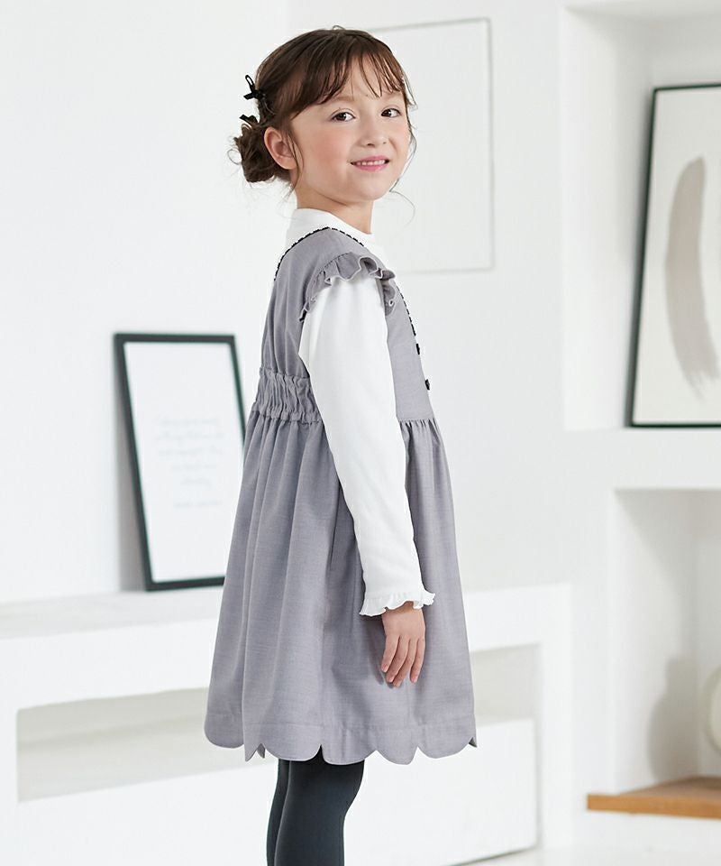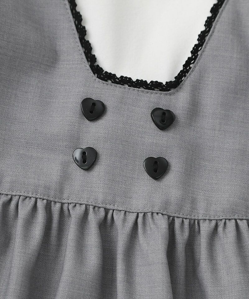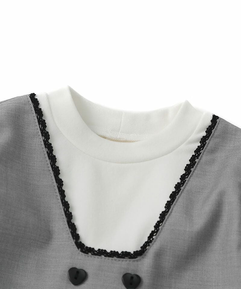 1枚で可憐なスタイルが完成♪お顔周りやお袖には柔らかく伸縮性のあるカットソーを使用しています。裾のスカラップシルエットやハート釦がキュートなポイントになりつつも、控えめなレースやフリルで上品な雰囲気も♪