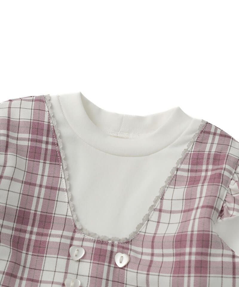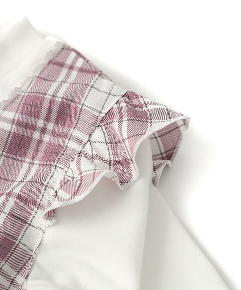 素材:身頃・袖・襟部分/ポリエステル91%・ポリウレタン9% レース部分/綿100% グレー…本体/ポリエステル71%・レーヨン26%・ポリウレタン3% パープル…チェック部分/ポリエステル98%・ポリウレタン2%