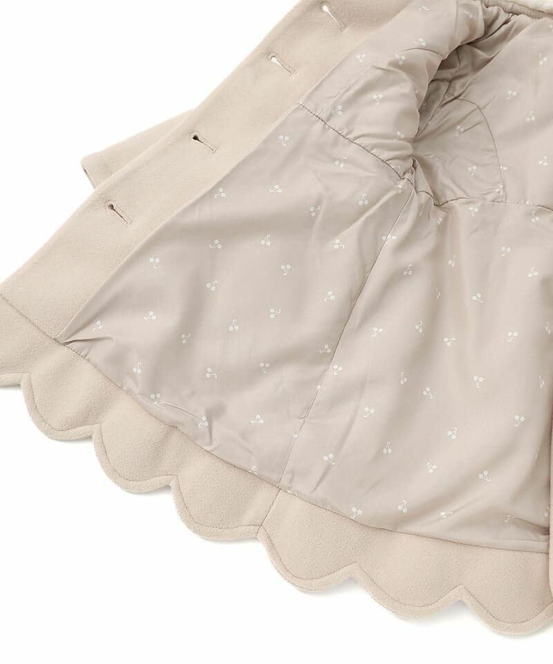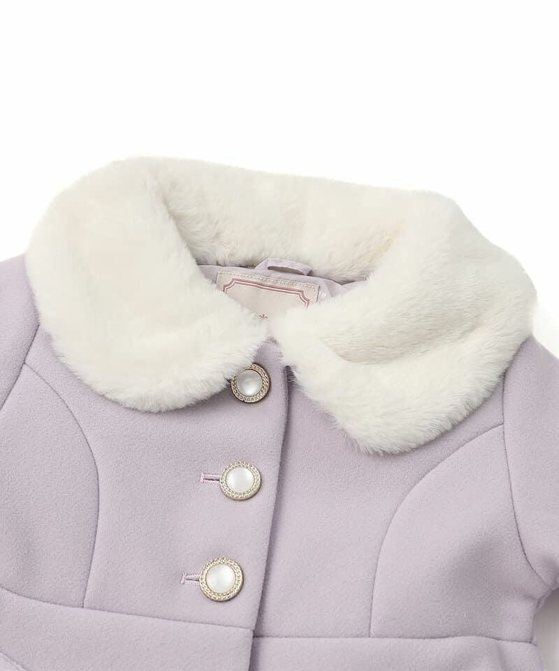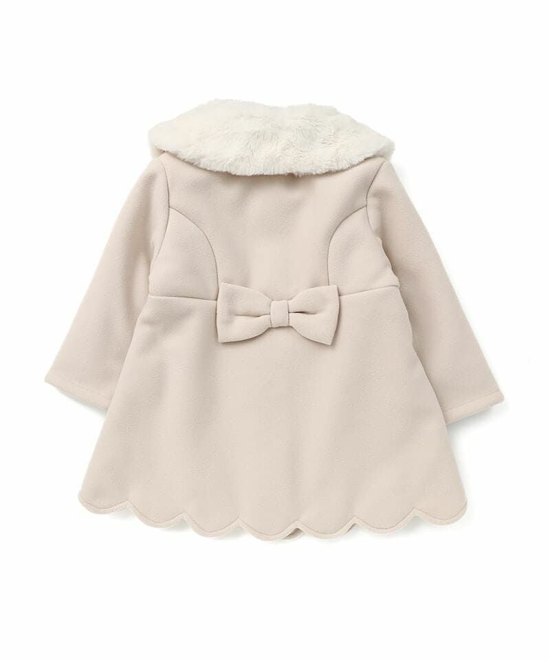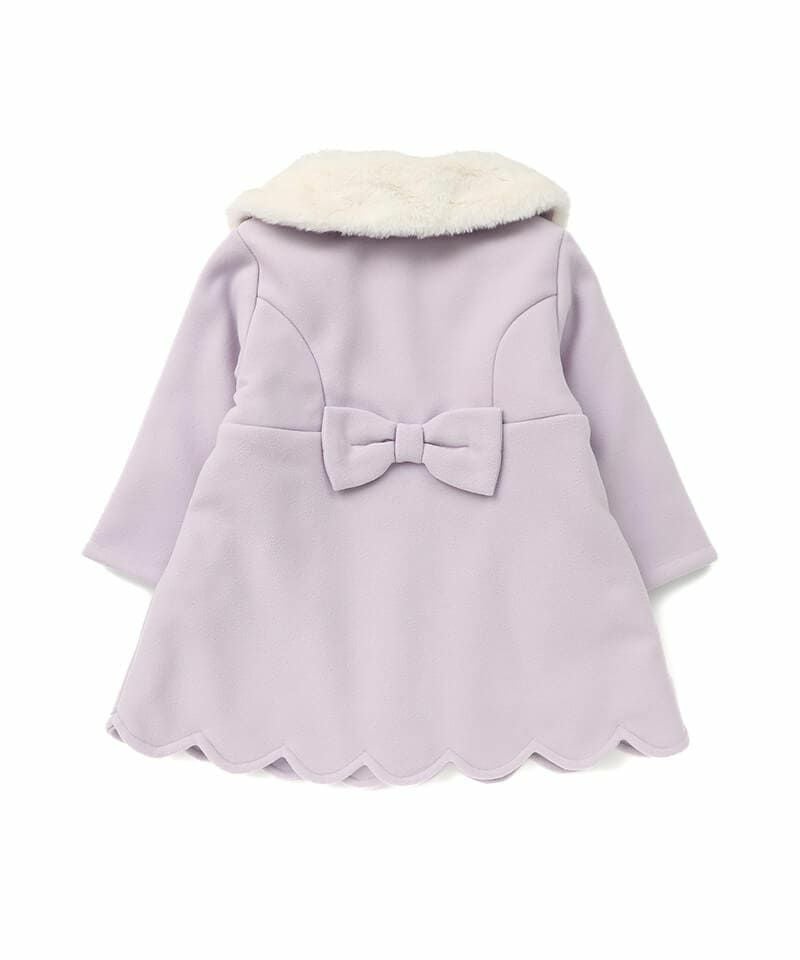 Aラインシルエットにフェイクファーの襟やスカラップデザインが華やかなコートは、どの角度から見ても清楚で上品な印象に仕上げました。柔らかなフェイクウール素材に中綿入りであたたかくお出かけにもぴったりです。両サイドにポケット、フックに掛けれるよう襟の内側にループ付きです。