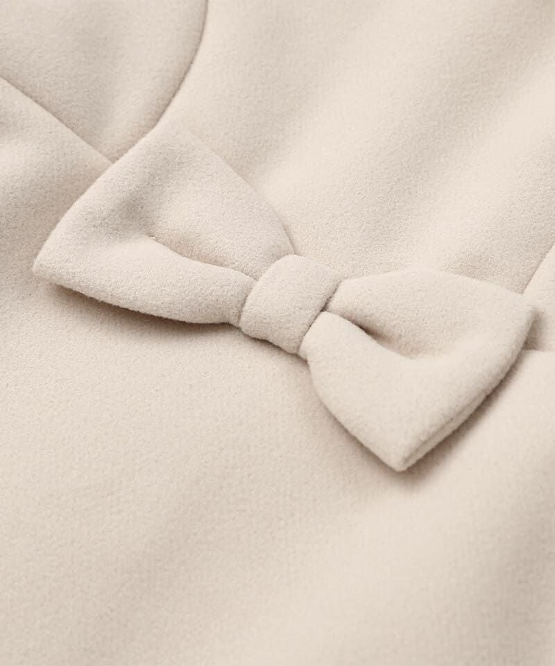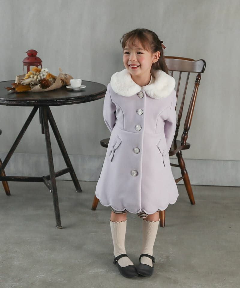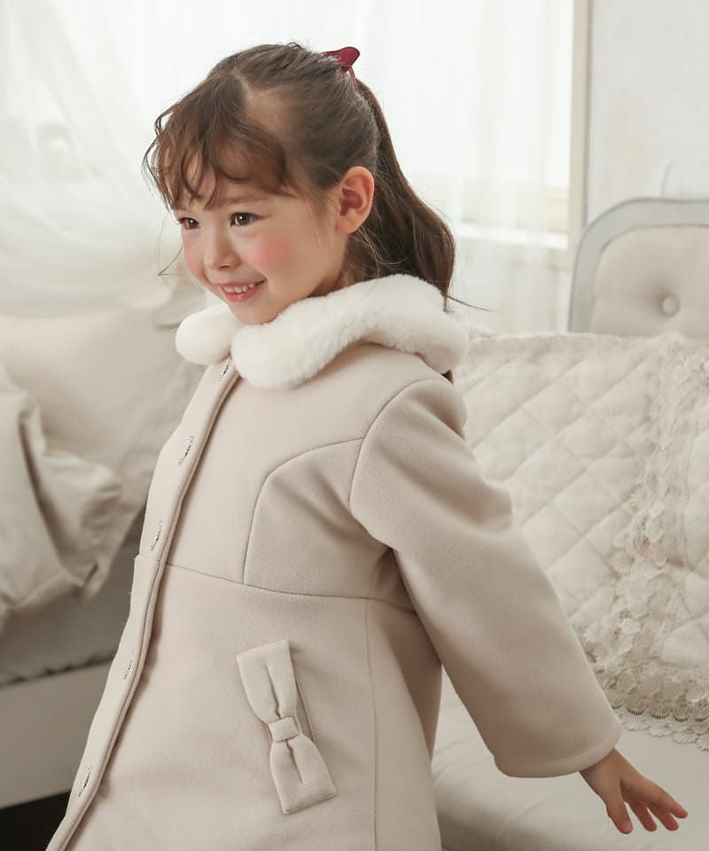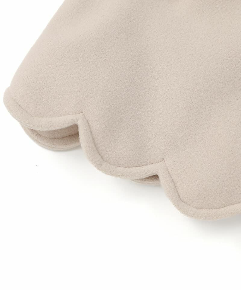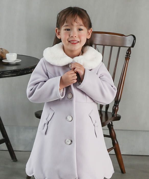 Aラインシルエットにフェイクファーの襟やスカラップデザインが華やかなコートは、どの角度から見ても清楚で上品な印象に仕上げました。柔らかなフェイクウール素材に中綿入りであたたかくお出かけにもぴったりです。両サイドにポケット、フックに掛けれるよう襟の内側にループ付きです。