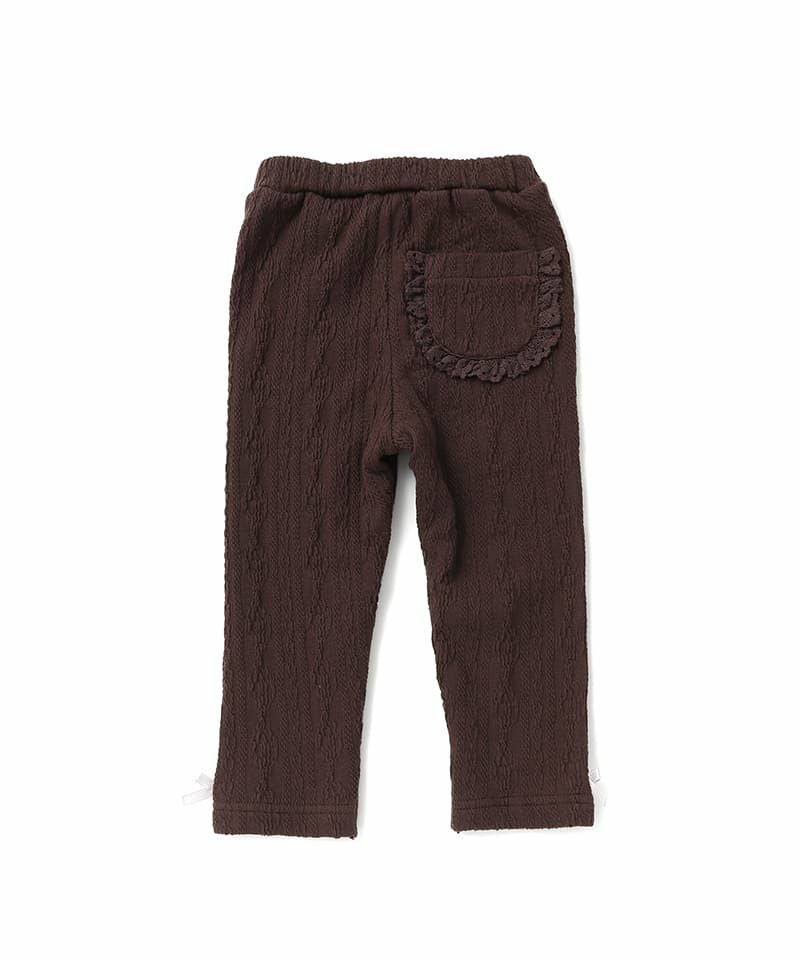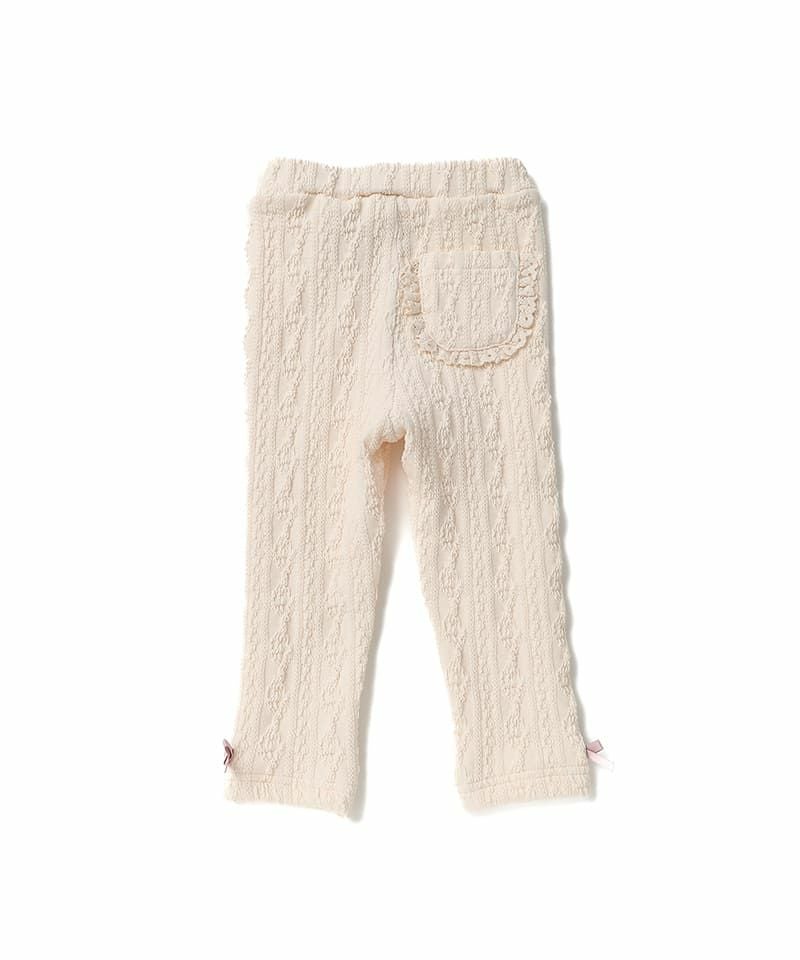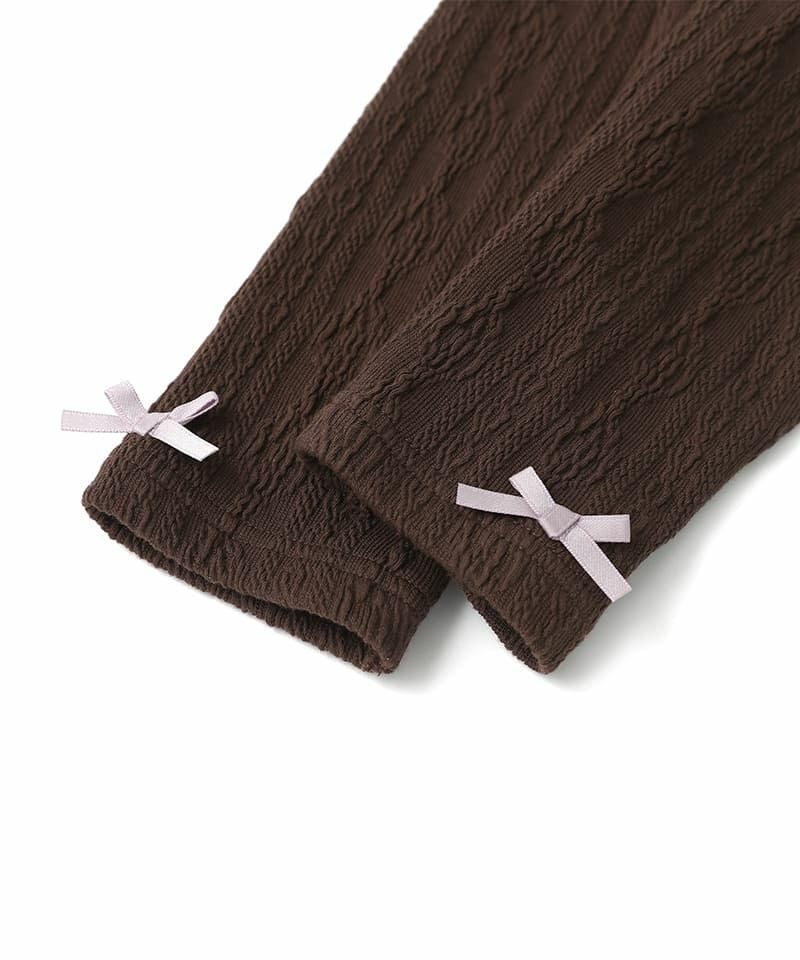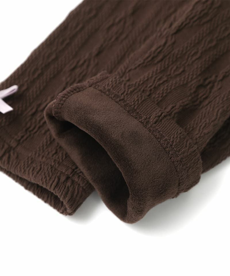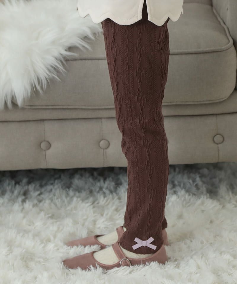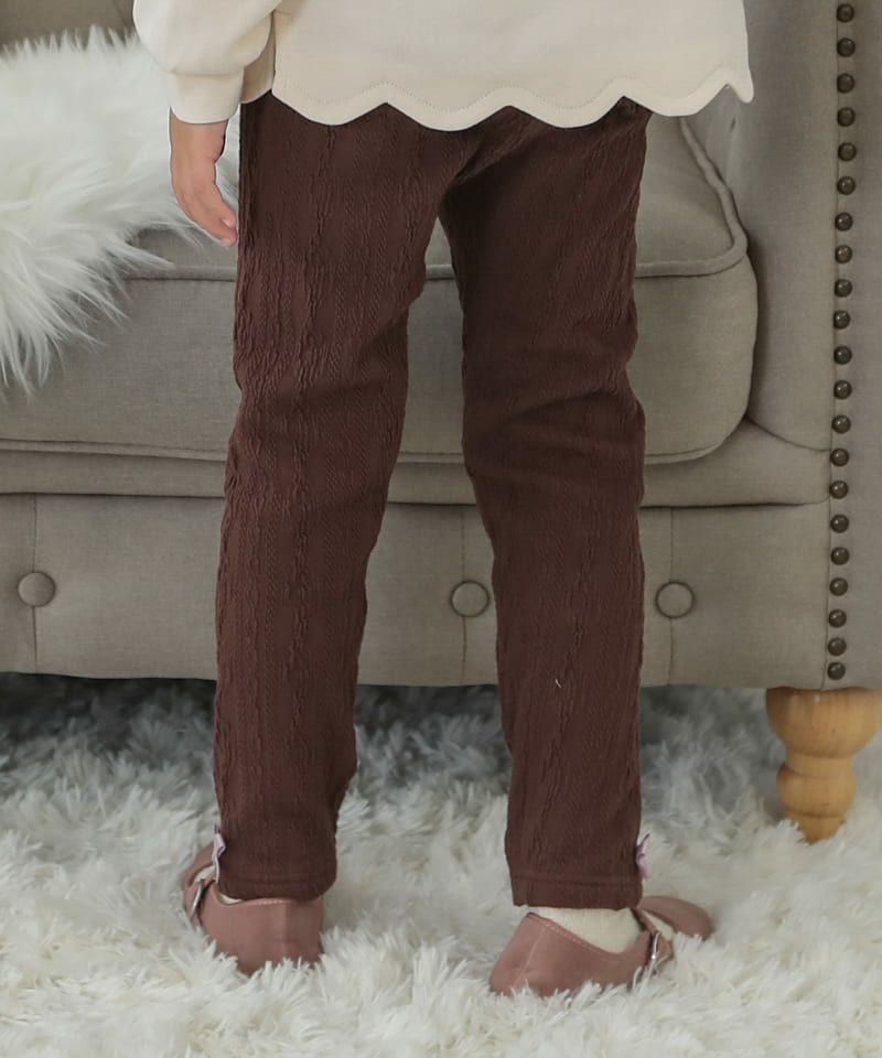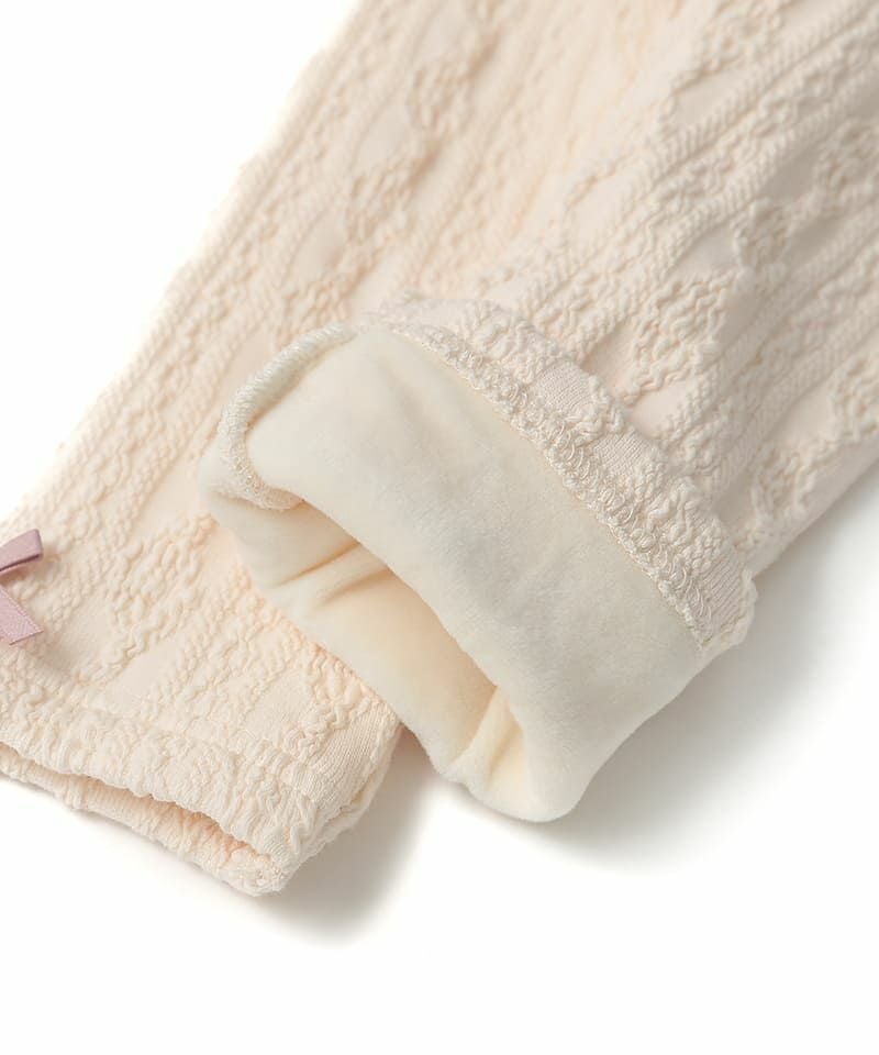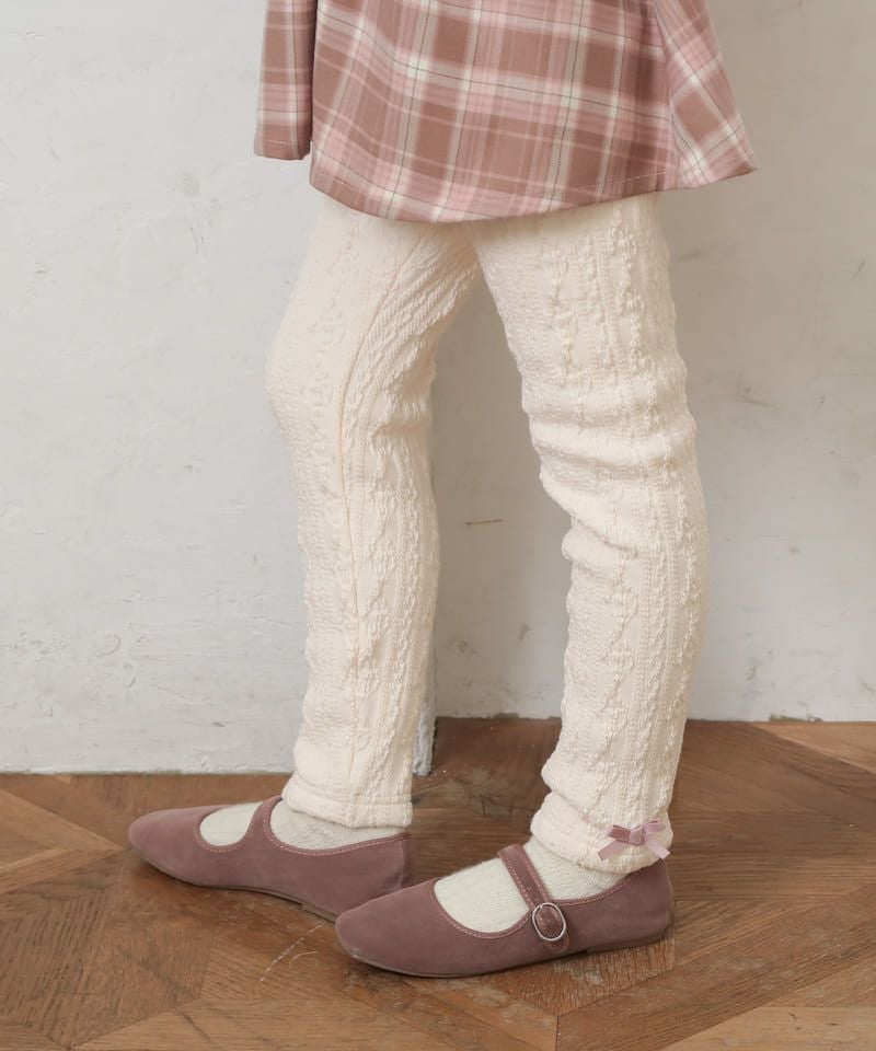 ニットのようなケーブル編みジャガードが冬にぴったりな厚手スパッツです。ふわふわなめらかな肌触りのシャギー素材を使用した裏地付きの2枚仕立てで快適にあたたかく過ごせます。トレーナーなどのトップスはもちろん、ワンピースとのコーディネートも冬らしく可愛く決まります。