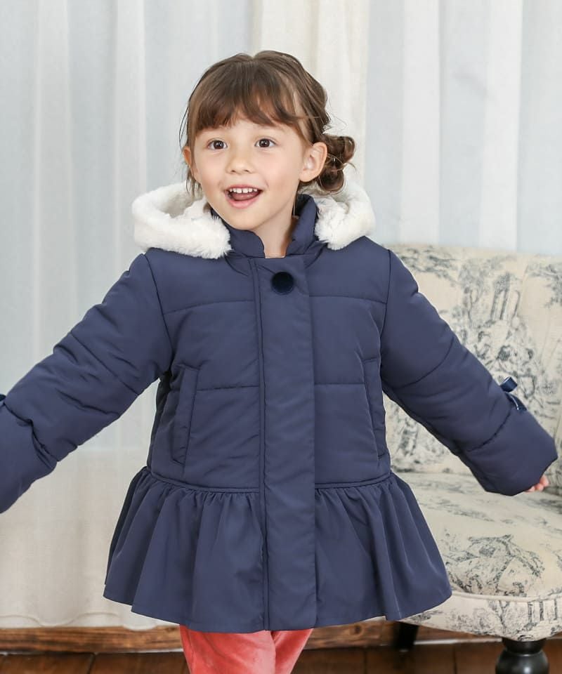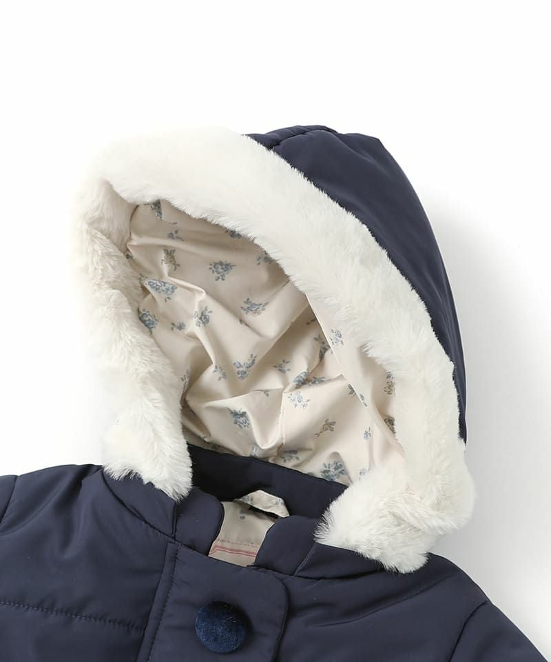 ■カラー展開:ピンク/ネイビーブルー ※この商品は生地に撥水加工(はっ水加工)を施しています。繰り返し洗濯するとはっ水効果が低下します。また、雨天時の長時間の使用は縫い目及び布部分より、中へ水が入る場合がありますのでご注意ください。 ※お名前タグ付き ※前にポケットがあります。 ※フードは取り外し可能です。 モデル身長:107cm / 着用サイズ:110size ※画面上の色はブラウザや設定により、実物とは異なる場合がございます。