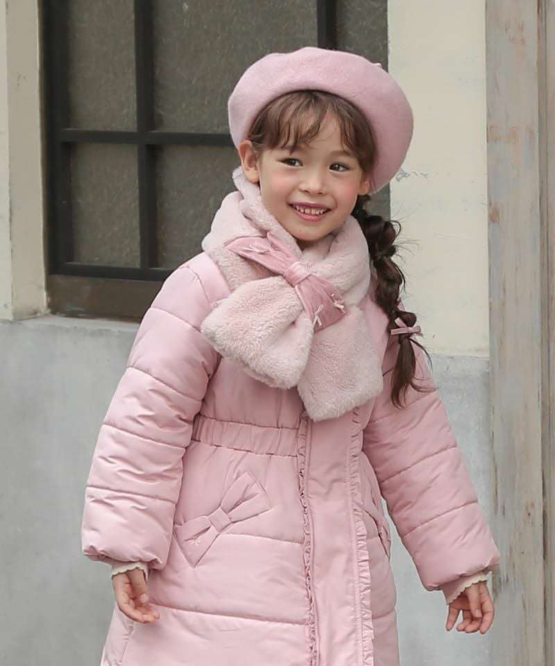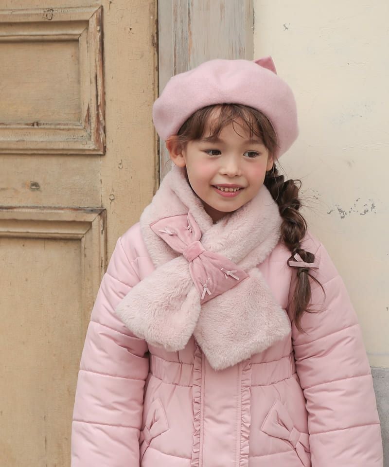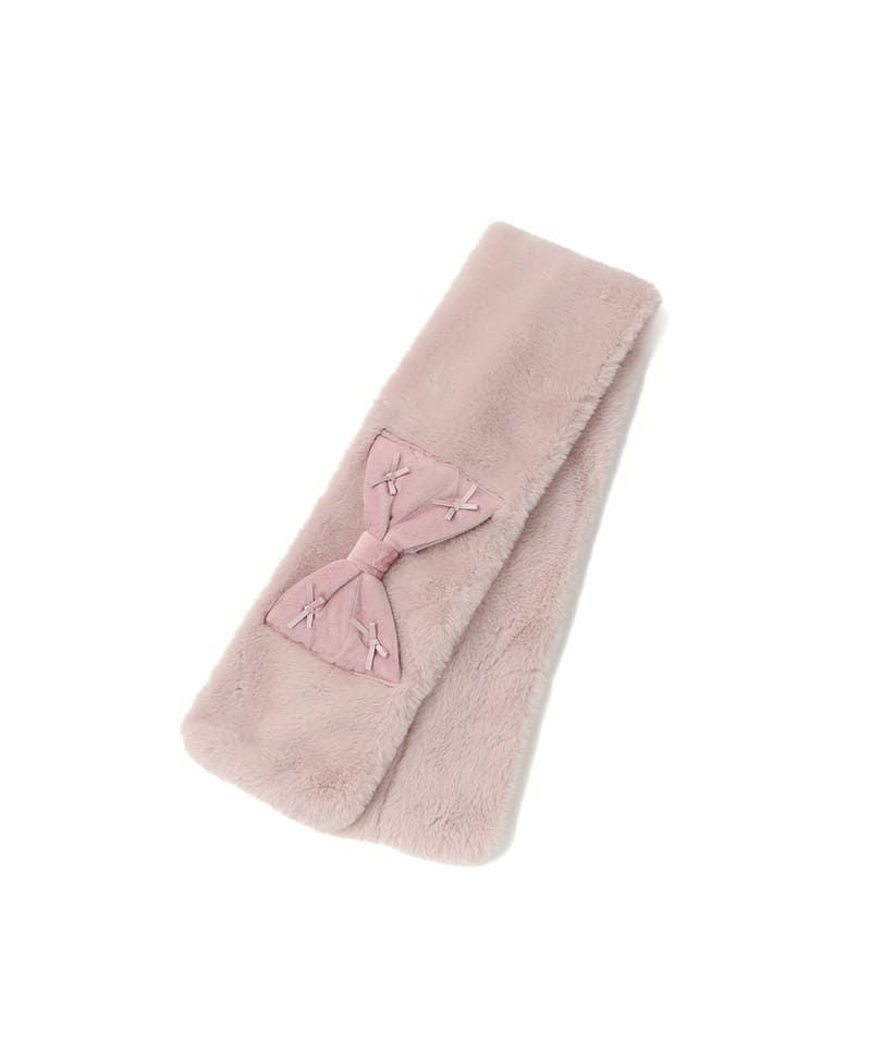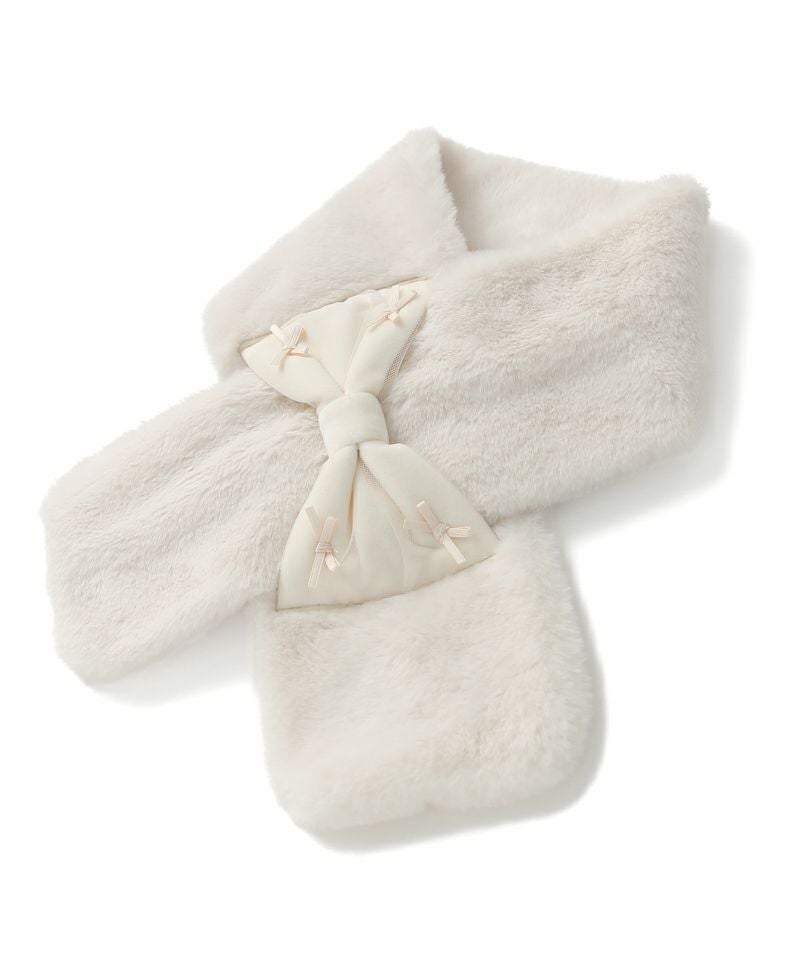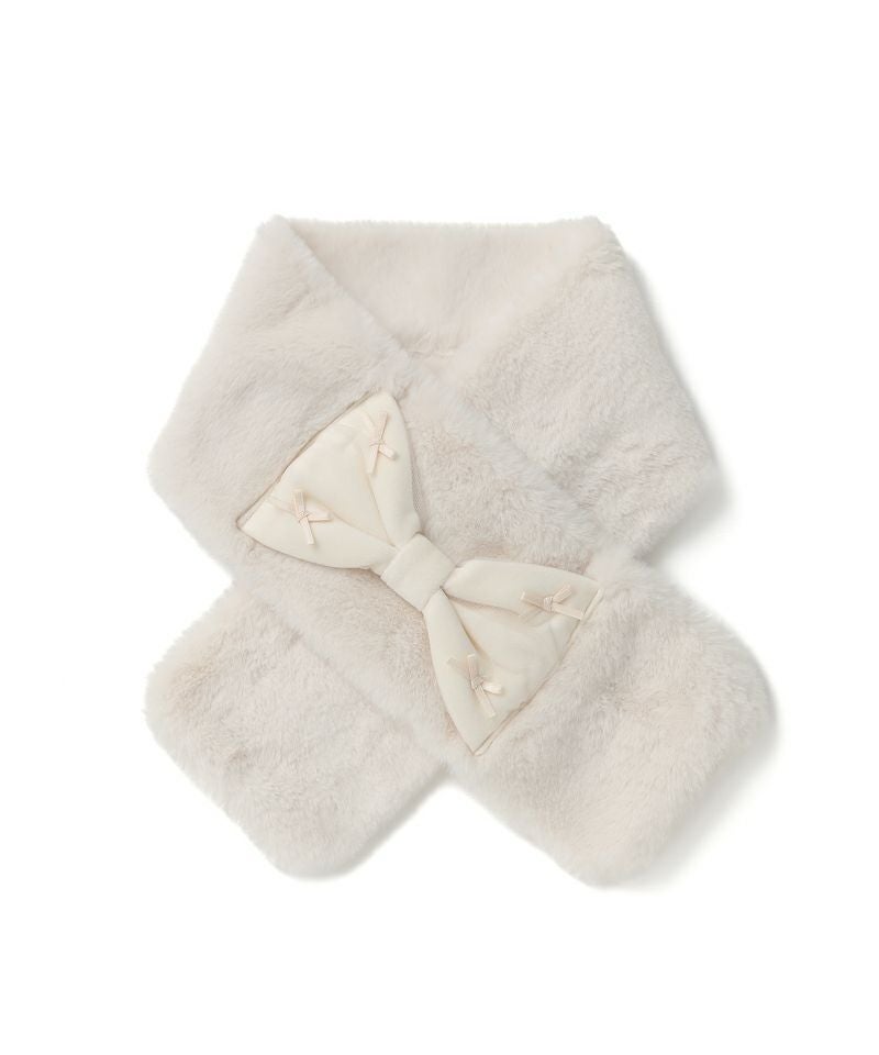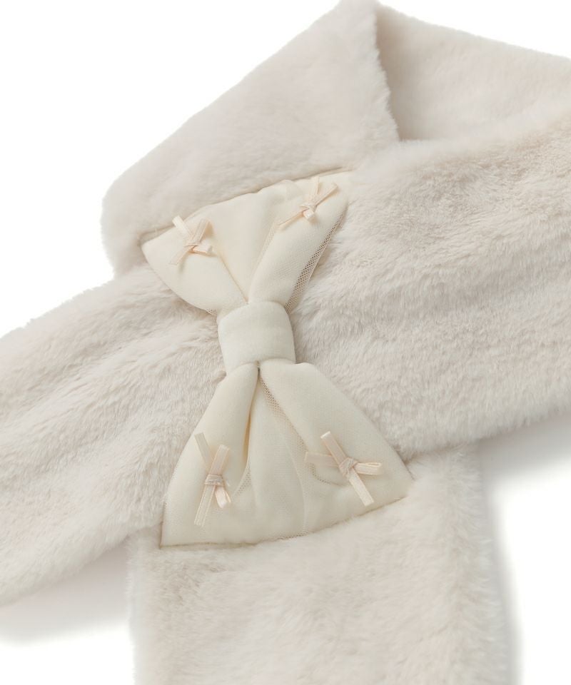 リボンいっぱいデザインがガーリーなマフラーです。やわらかなフェイクファーは、上品な素材感でふわふわであたたかい。先端をリボンのループに通すだけの仕様なので簡単に着用していただけます。お出かけやお呼ばれコーディネートのポイントにもぴったりです。