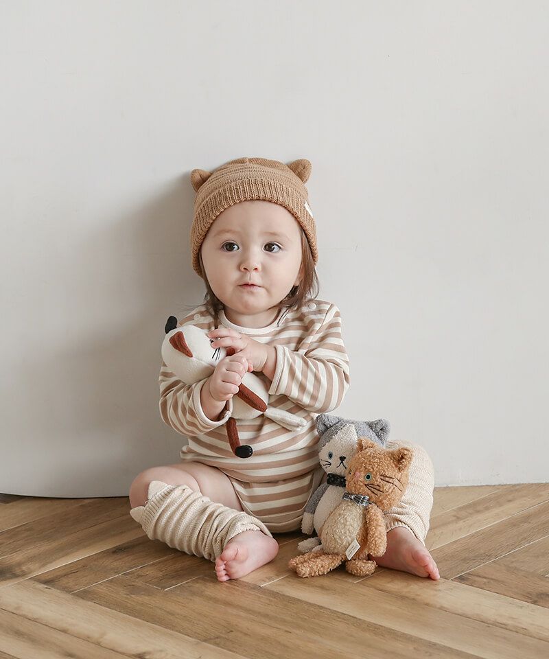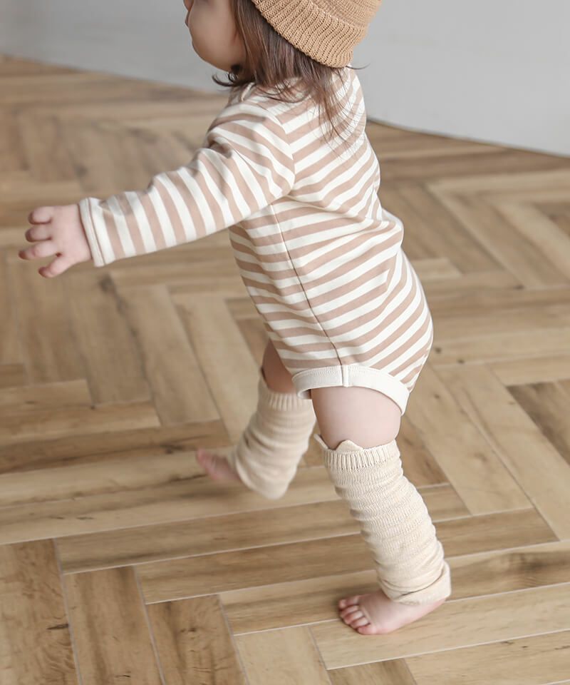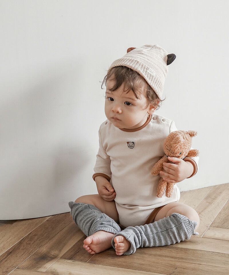 体温調整にマストなレッグウォーマーはコーディネートを選ばないシンプルで上質な雰囲気に仕上げました。さりげないねこみみのあしらいがベビーらしい愛らしさを添えてくれるアイテムです。ギフトへのプラスワンも、ぐっと可愛らしいギフトにまとまるのでおすすめです。お素材はコットン100%の優しい肌触りの糸を使用し、緩急を付けて編むことで伸縮性を持たせました。ボディシャツとコーディネートすればとっても可愛い装いに。また、寒さが気になる時にはレギンスの上から重ねて保温いただいたりと、とっても重宝するアイテムです。