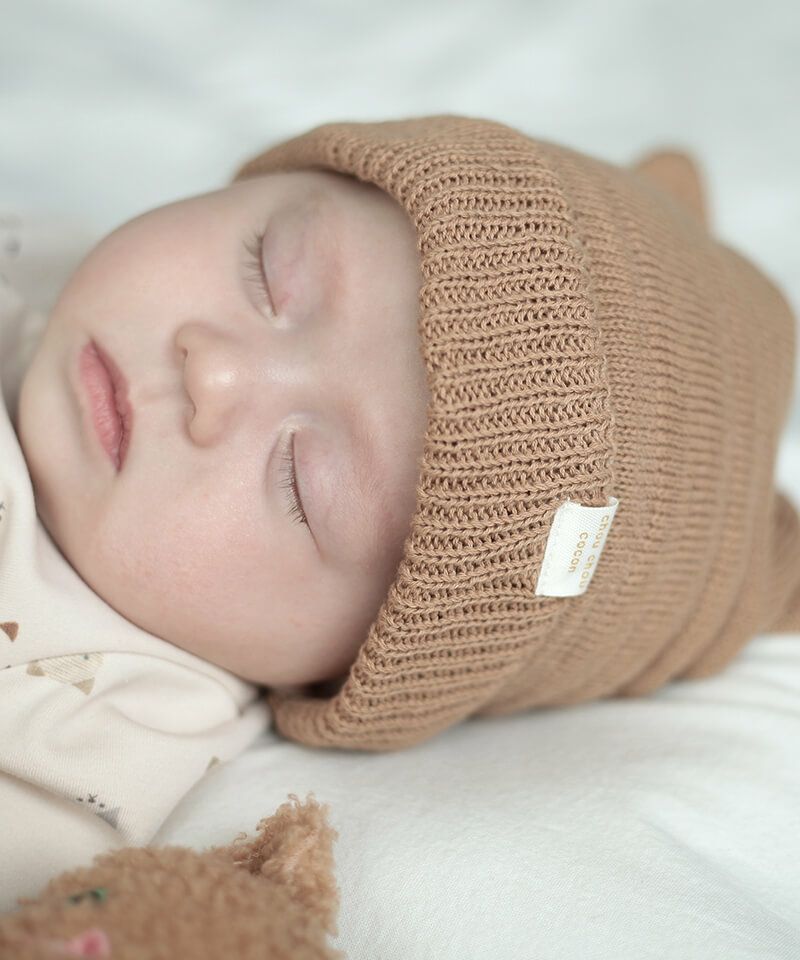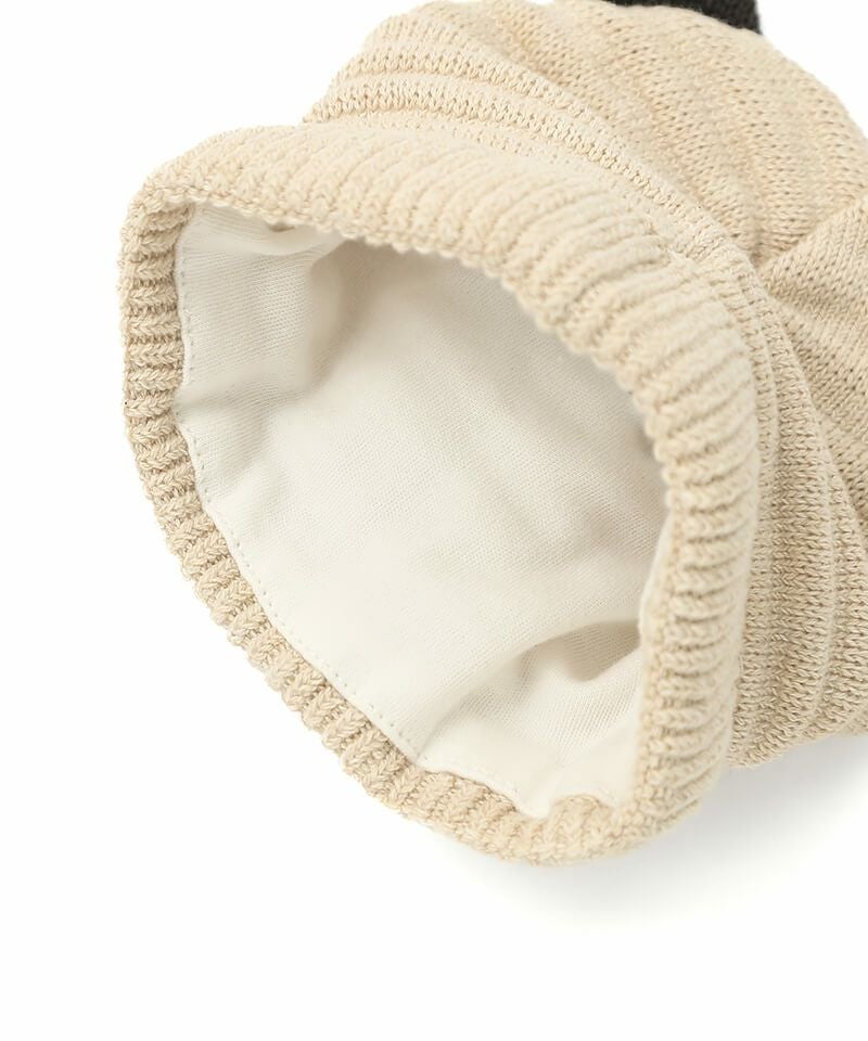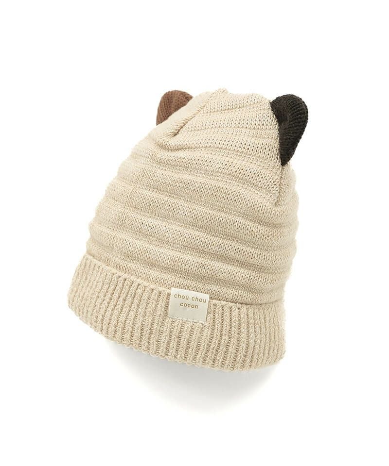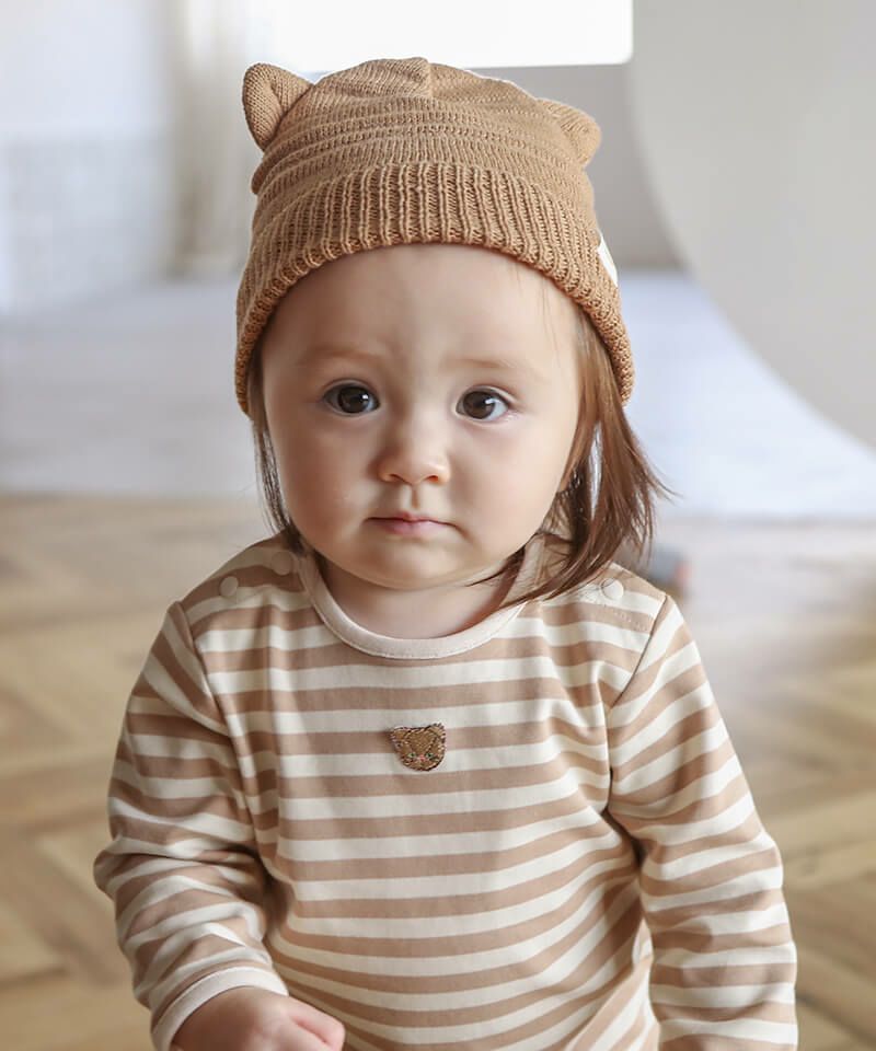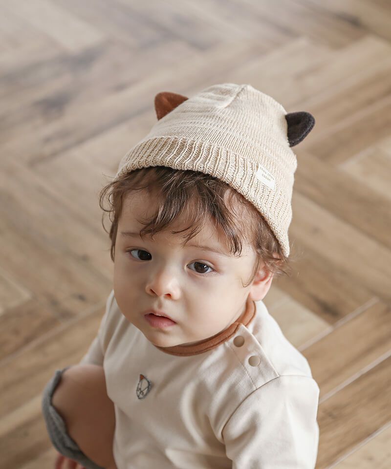 何といっても見た目の可愛らしさが今だけの特別感♪かぶった姿が早く見たくなるアイテムです。コットン100%の優しい肌触りの糸を使用し、緩急を付けて編むことで伸縮性を持たせた表地、コットン100%のカットソーを使用した裏地で汗っかきベビーにも優しい設計です。ねこボディシャツとコーディネートすれば、ぬいぐるみの“おともだちねこ”とお揃いが楽しめるアイテムですのでシリーズでお楽しみいただけると嬉しいです♪