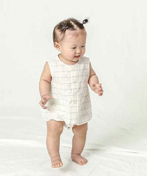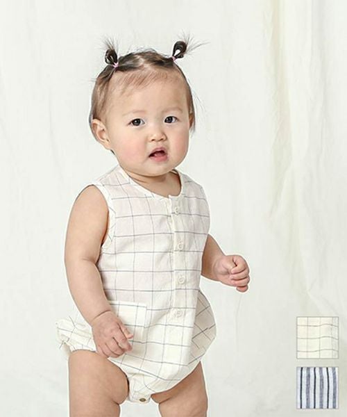 ■ブランド Piccolo ■アイテム ノースリーブロンパース ■素材 綿100% チェック布帛×ストライプ布帛 ■サイズ 70/80