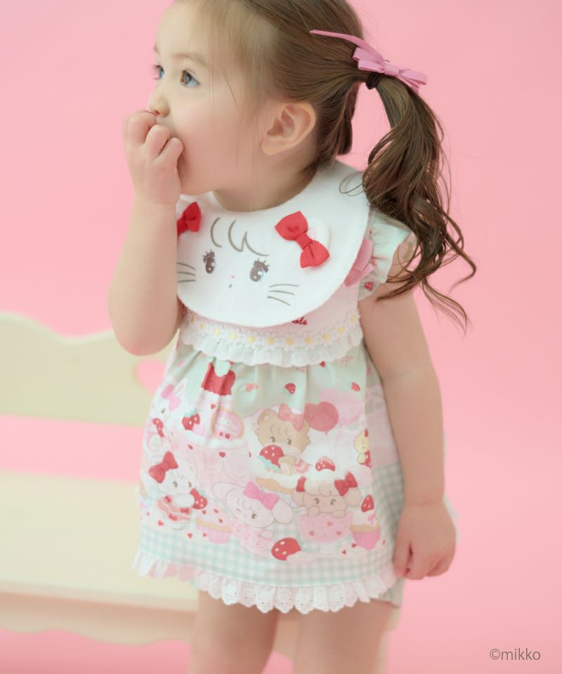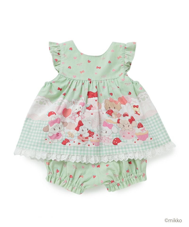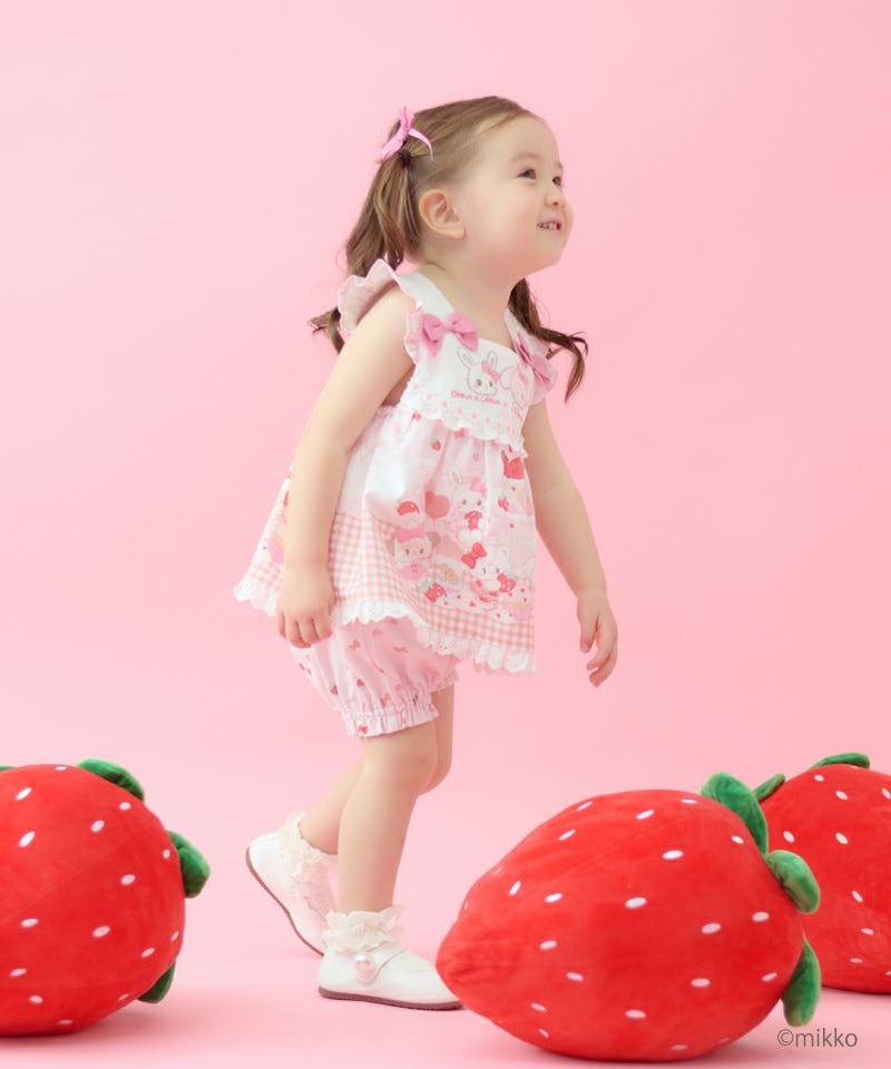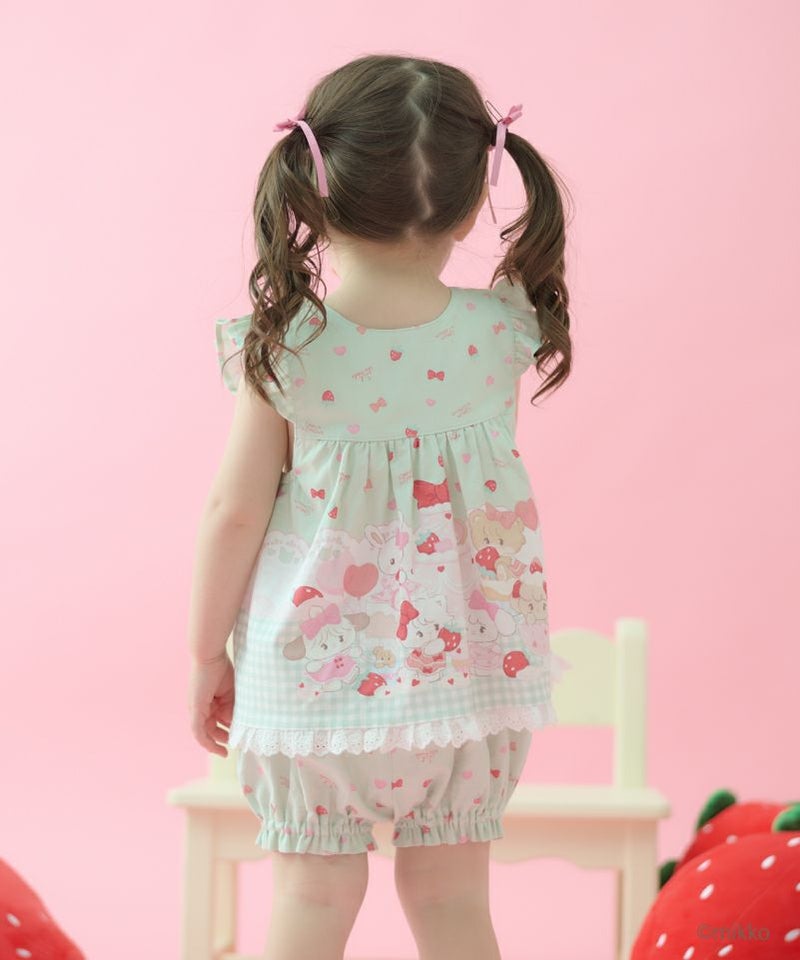大人気キャラクター「Lil ala mode」との特別なコラボレーションからセットアップが登場。キムラタン100周年アニバーサリーのために描きおろされたキュートなイラストをパネルプリントで贅沢にあしらいました。トップスのピンクはうさぎちゃんとキャミー、ミントはうさぎちゃんとムースの可愛いアップリケ刺繍をプラス。ふんわりとしたシルエットのブルマがセットになっており、ベビーならではの可愛らしさを引き立てます。記念日やお出かけにはもちろん、ギフトにもおすすめです。