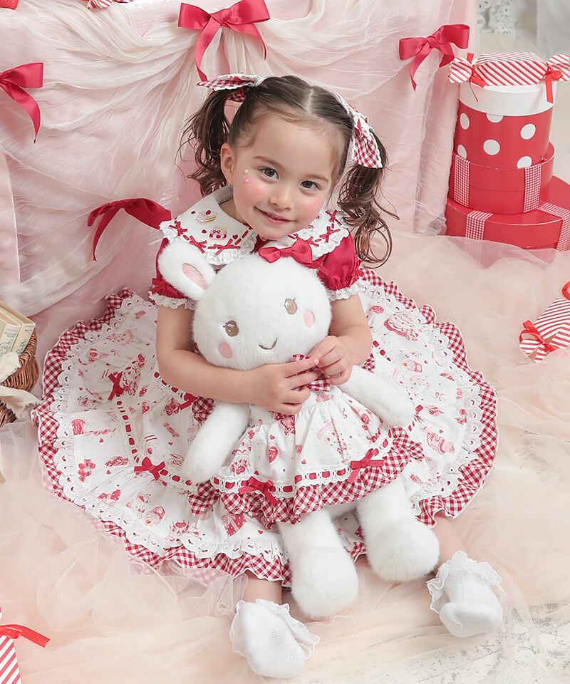 ジャンパースカートとお揃いのお洋服を着た特別なうさぎちゃん。