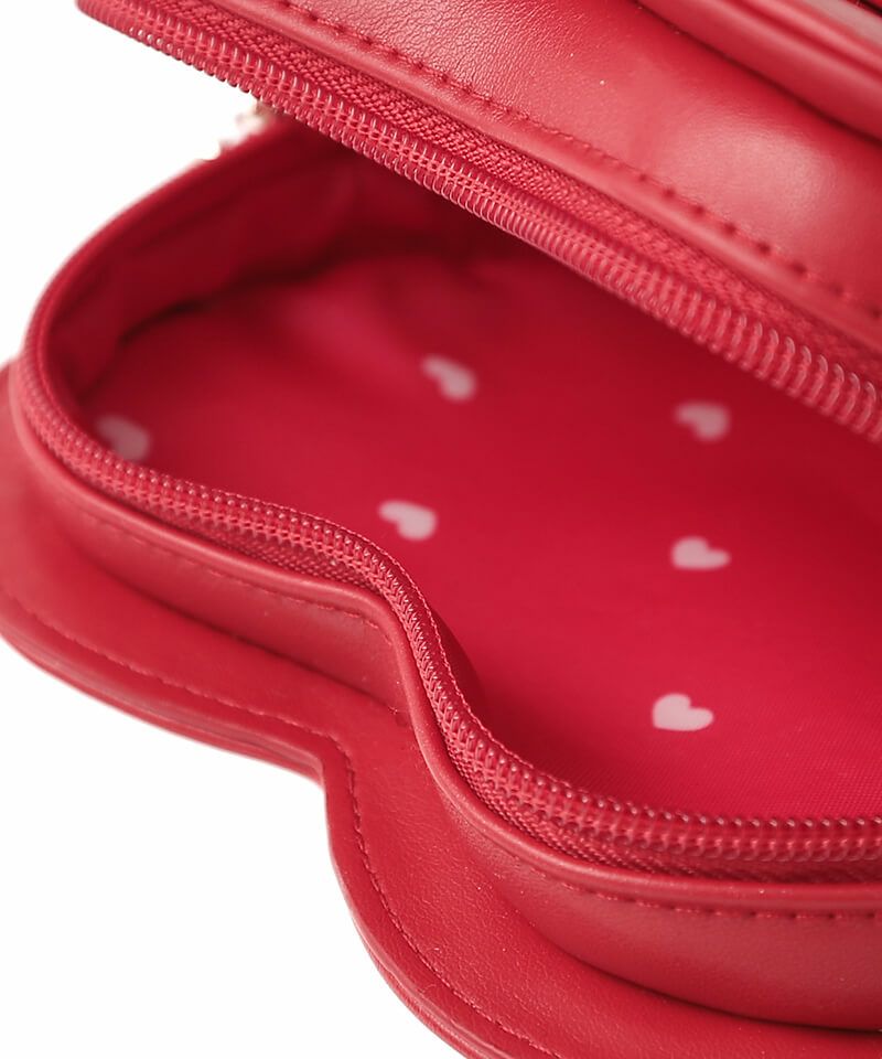 心ときめくスイートなハートフォルムが魅力のショルダーバッグ。