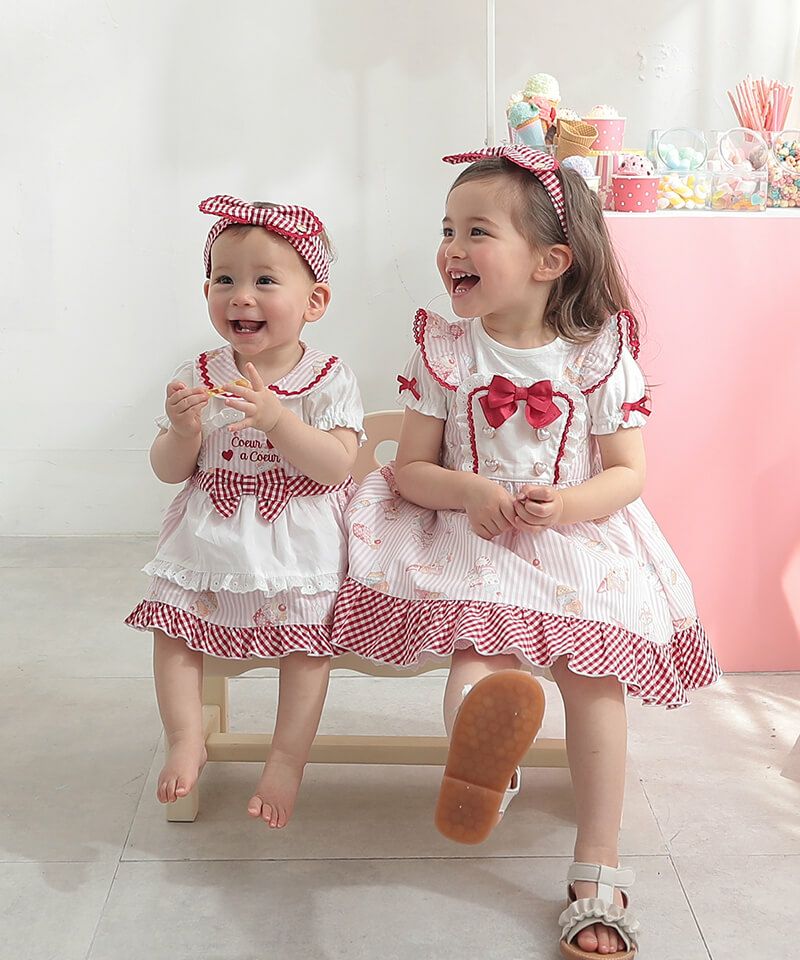 ■ブランド coeur a coeur ■アイテム ワンピース ■素材 本体・レース・ギンガムチェック部分/綿100% リボン部分/ポリエステル100% ソフトブロード×ジャガード天竺 ■サイズ 90/100/110/120 ■洗濯表示 取扱い表示記号について
