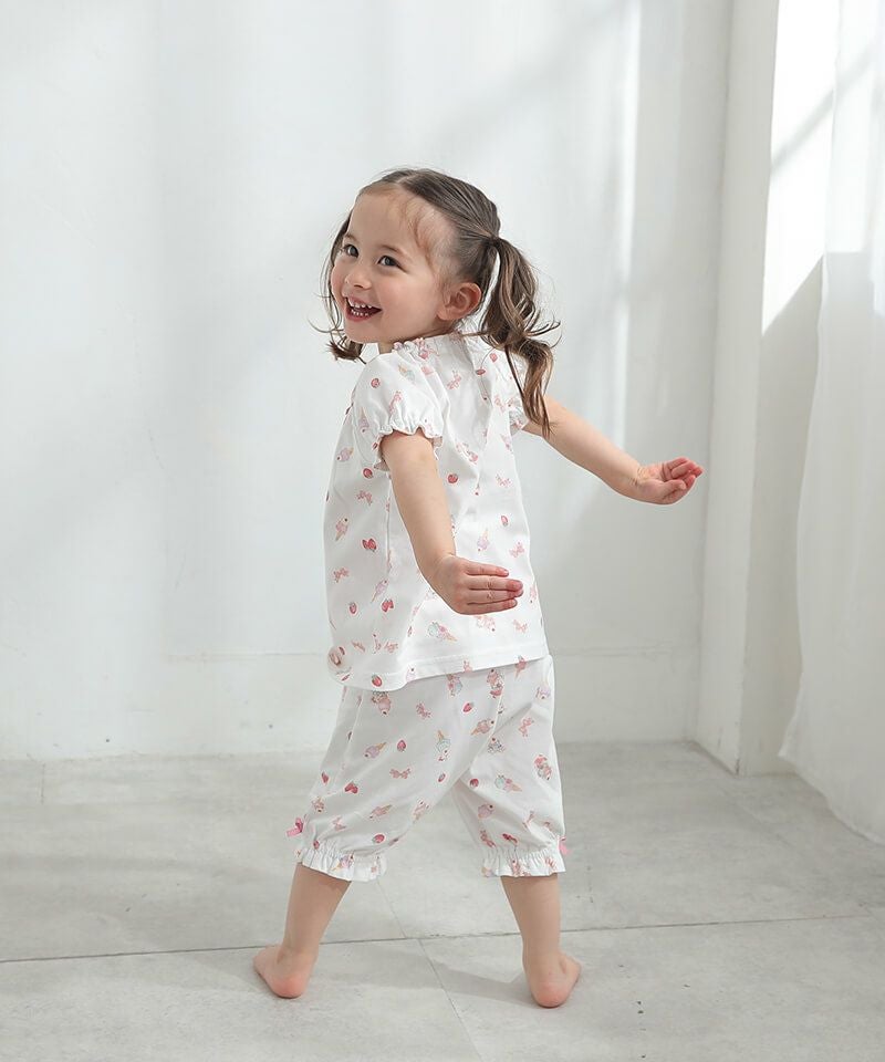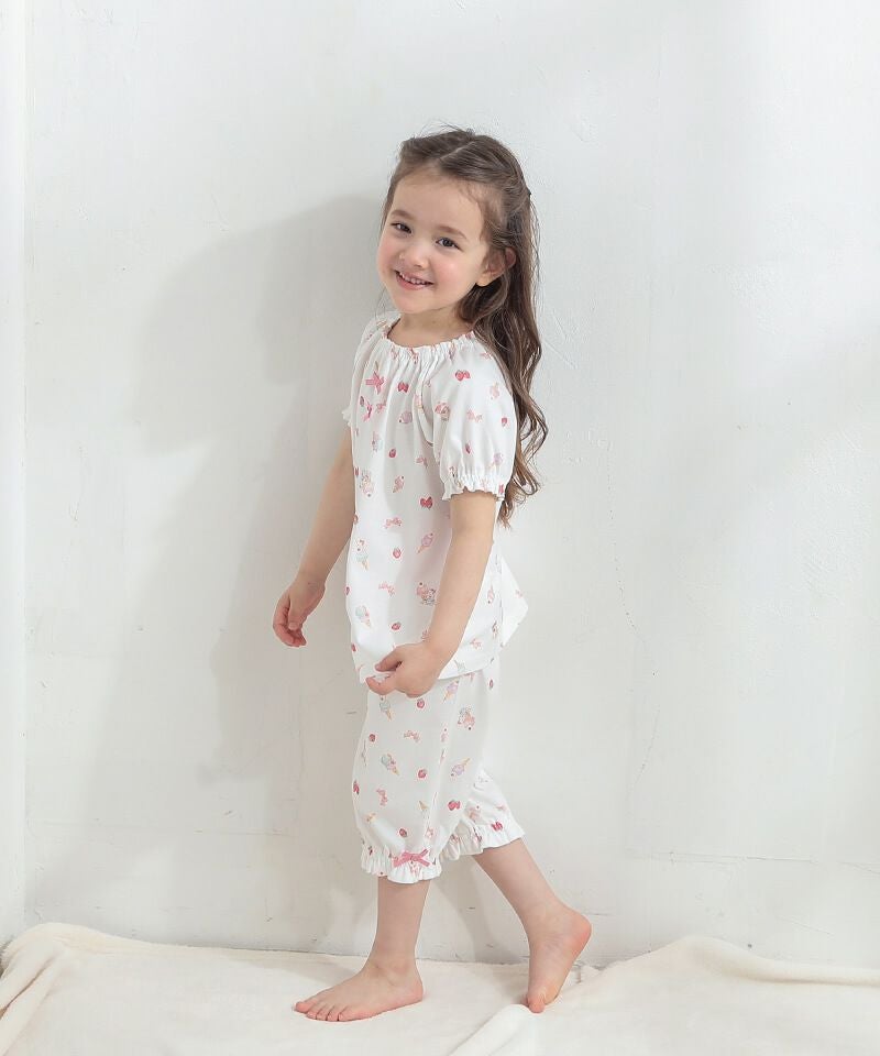 ■ブランド coeur a coeur ■アイテム パジャマ ■素材 上衣…本体/綿100% リボン部分/ポリエステル100% 下衣…本体/綿100% ウエスト部分/綿98%・ポリウレタン2% リボン部分/ポリエステル100% 天竺 ■サイズ 90/100/110 ■洗濯表示トップス ボトムス 取扱い表示記号について