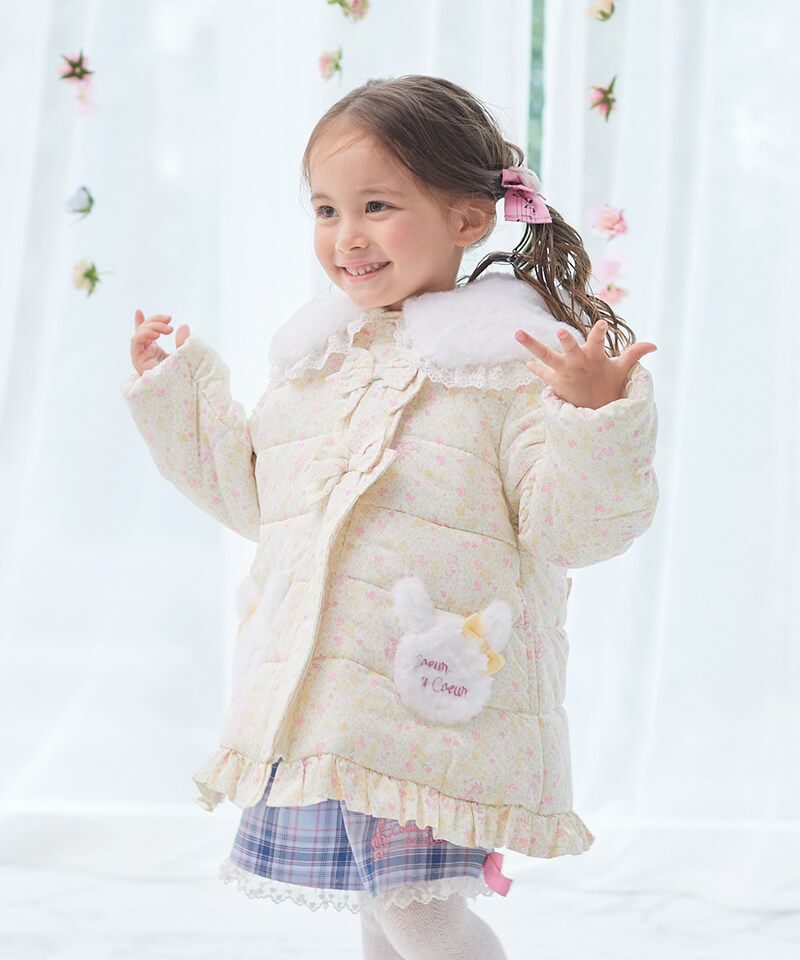 coeur a coeur フラワープリントうさみみ中綿コート