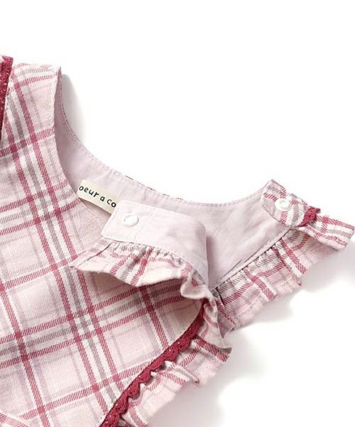 ■カラー展開:ピンク/サックス ※ポケット部分は飾りです。 モデル身長: 80.5cm / 着用サイズ : 80size ※画面上の色はブラウザや設定により、実物とは異なる場合がございます。