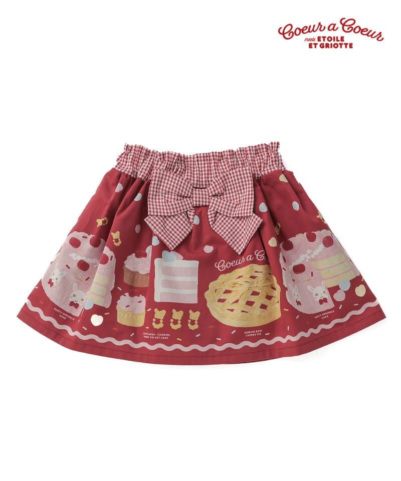 人気イラストレーターEtoile et Griotteとの特別なコラボアイテムが登場。チェリーパイにアニバーサリーケーキ、うさぎちゃんクッキーなど世界観たっぷりのアートが魅力的♪見ているだけで幸せな気持ちになれるスイートなスカートです。ウエストのギンガムチェックやバックリボンがアクセントとなりプルオーバーやブラウスと合わせるだけで、主役級の着こなしが完成します♪