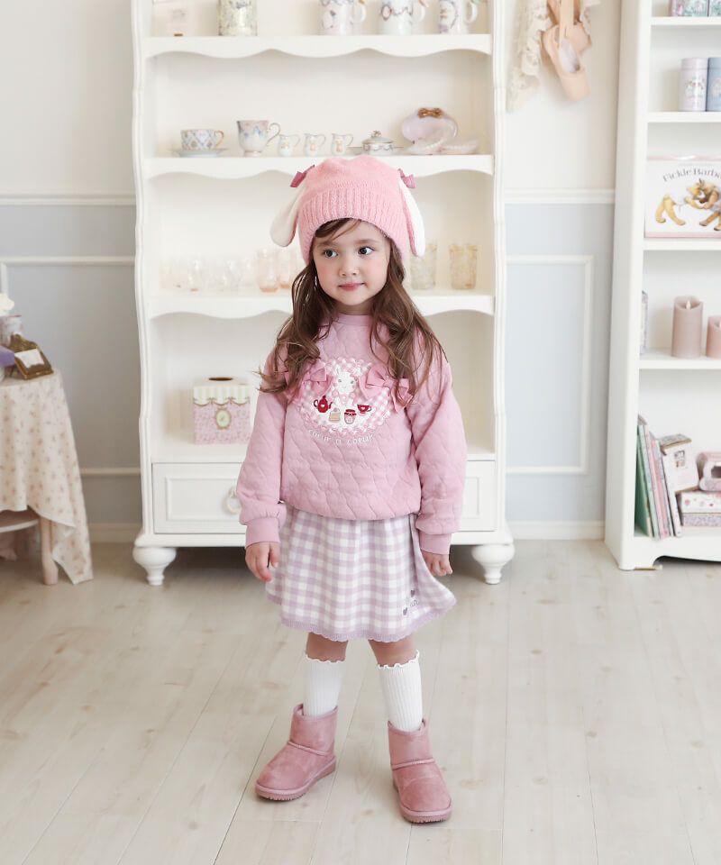 同じ柄のニットとキルトトレーナーにも合わせられて来回せます。どちらのコーデも可愛いです。