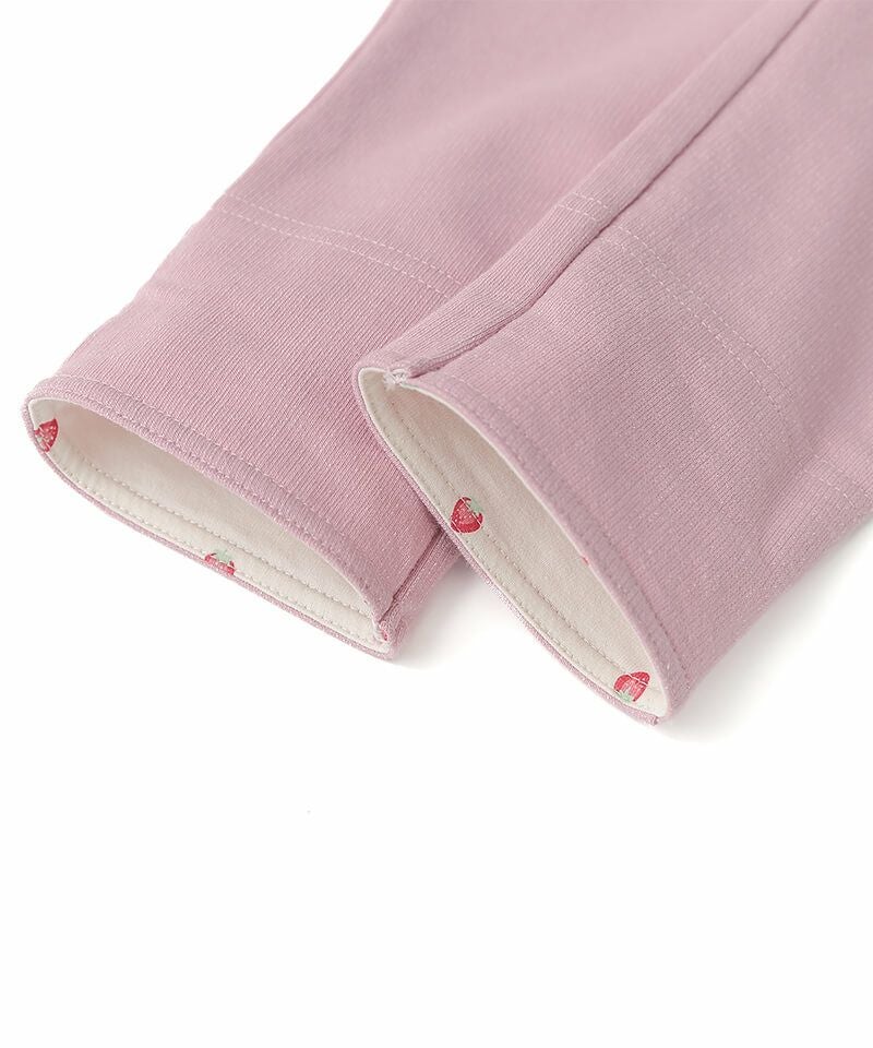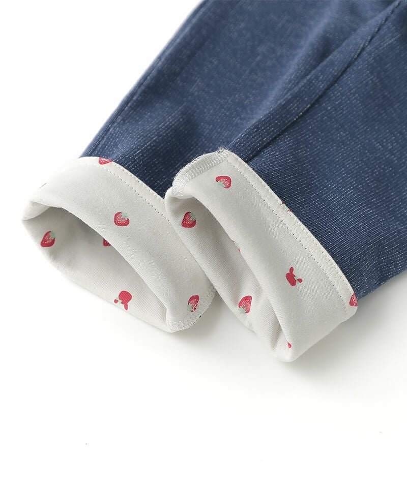 110cmのロングパンツが折り返しなしでぴったりになってしまったので、120cmを購入しました。 折り返し部分のいちご&うさぎちゃんのシルエットが可愛いです。 綿100%なのも嬉しいです。