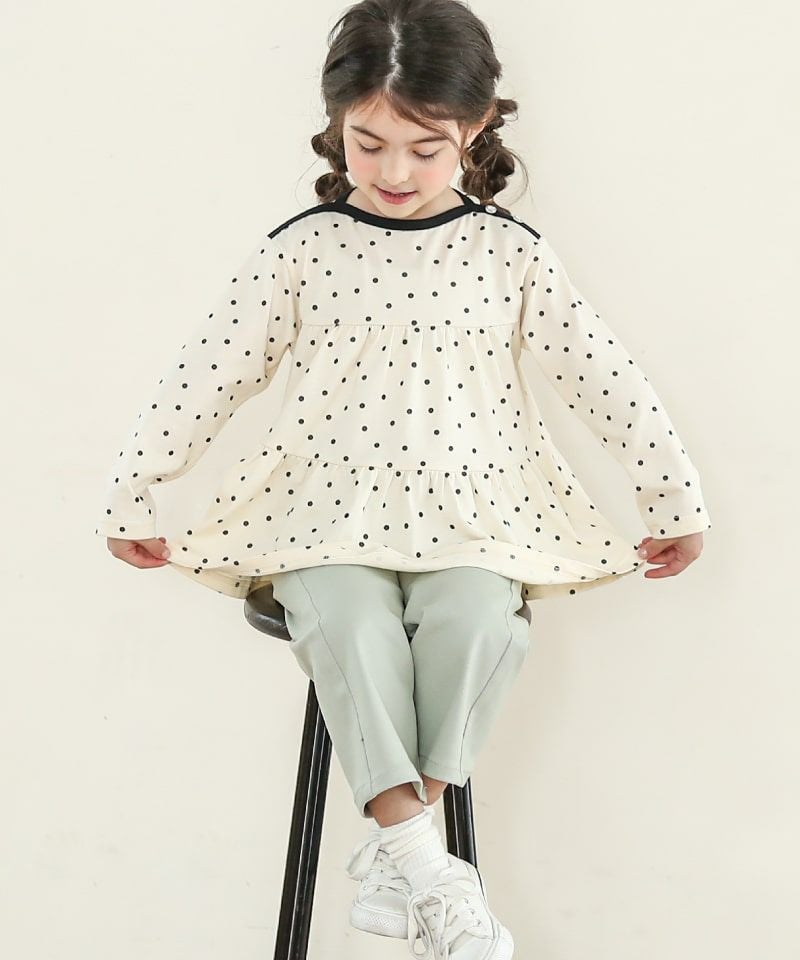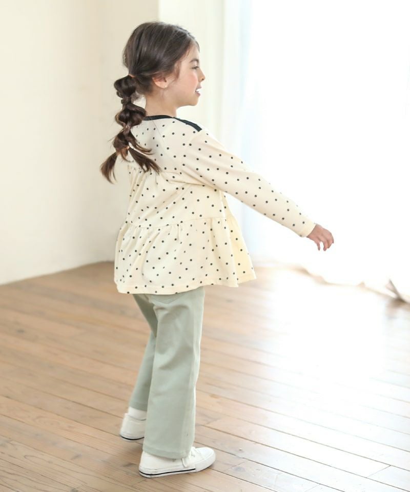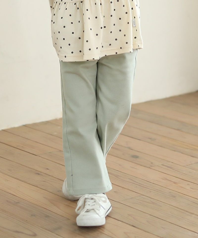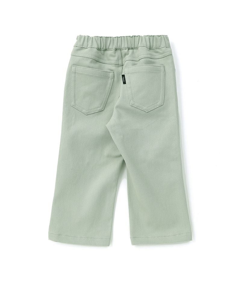 程よいワイドシルエットが素敵な9分丈パンツ。9分丈にすることで足さばきも良く、もたつきがない分、春らしい軽さも感じるシルエットに。キッズが動きやすい軽さとハリをキープし易い、程よい厚みのバランスが取れたお素材です。ちょっぴり大人っぽいトレンド感が素敵です。