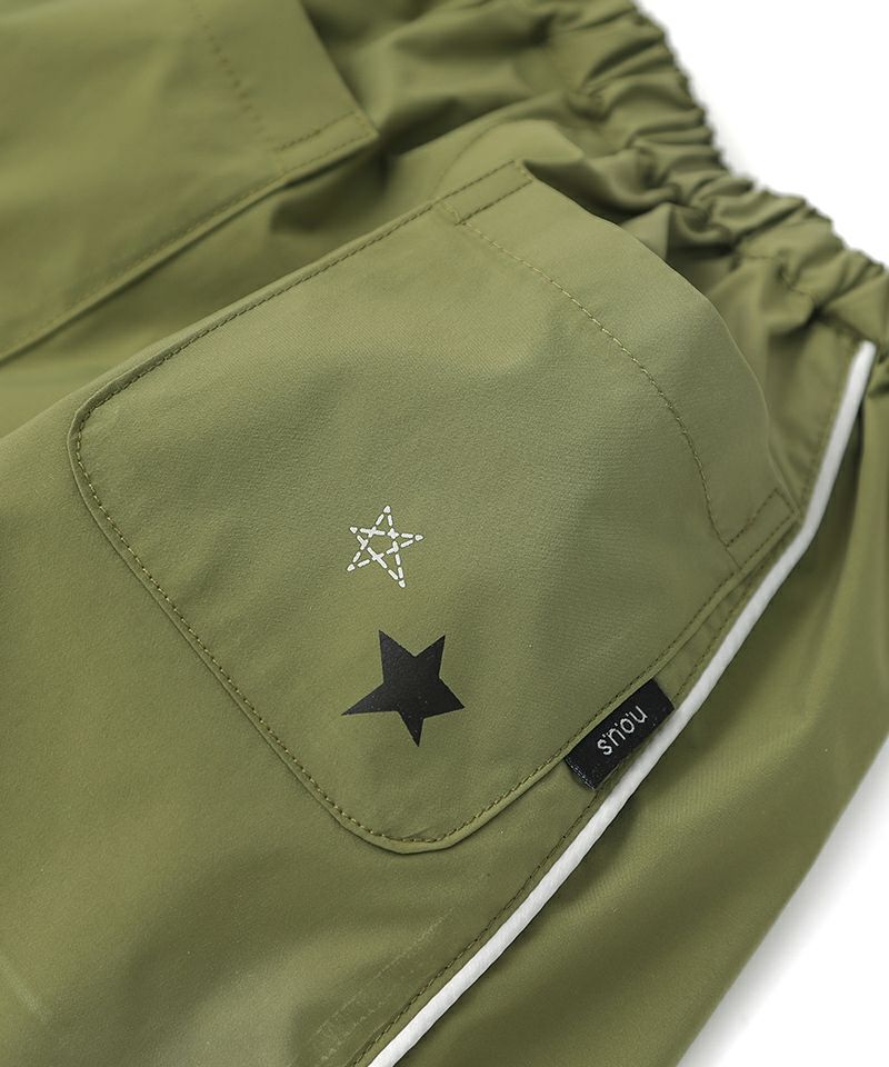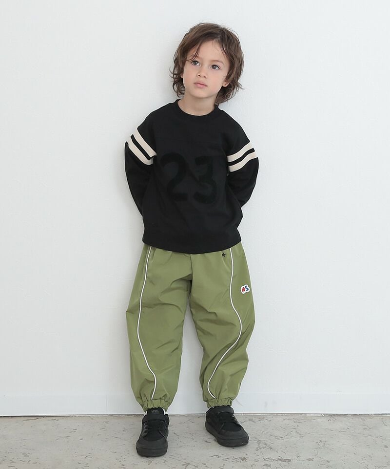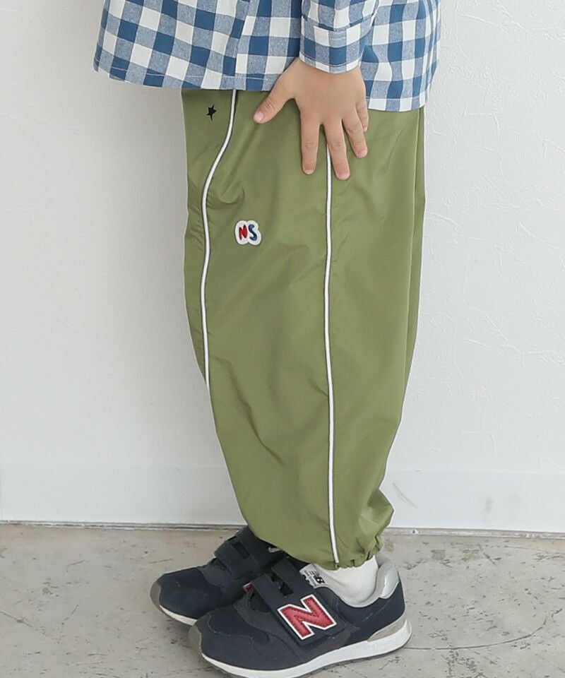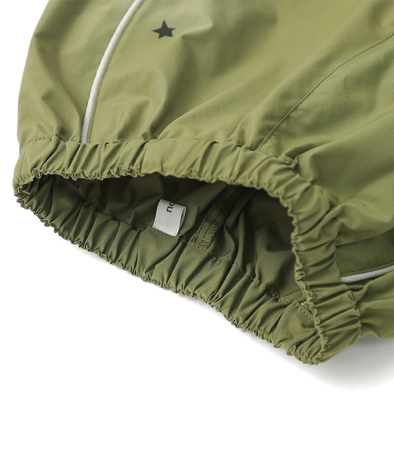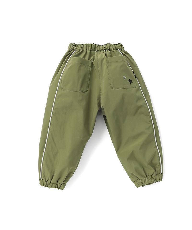 履きやすそう!今は下にスパッツを履かせてから着せてます。パンツ自体はとっても軽い素材です。撥水加工されているので梅雨時期にも良いかも!長く履けそうです♪足首にゴムが入っているのでワンサイズアップして緩めで履いてますが、もたつきなくい感じです☆ ミリタリー感が少な目なカーキ色もおしゃれでよかった!!