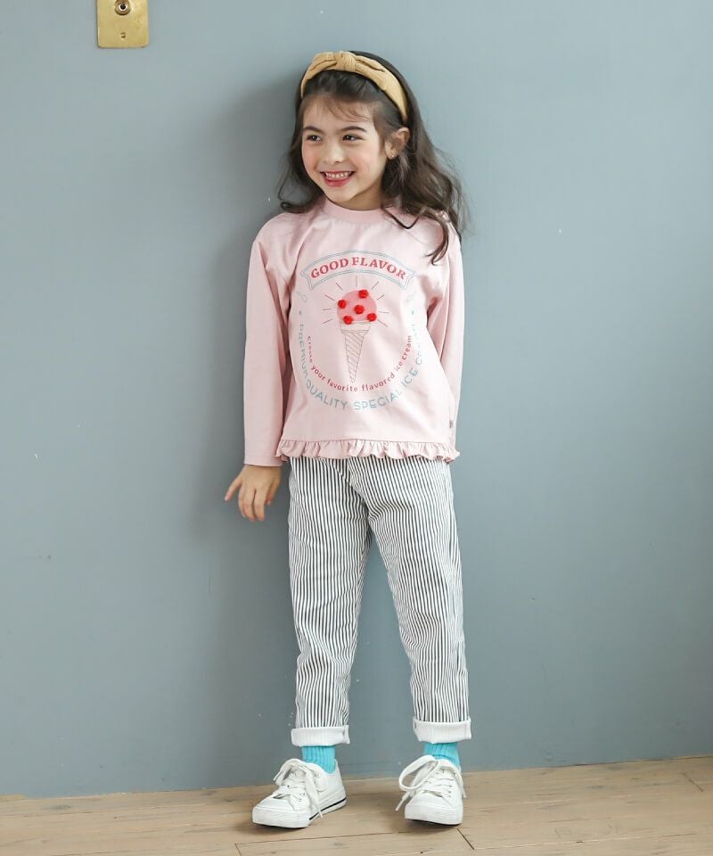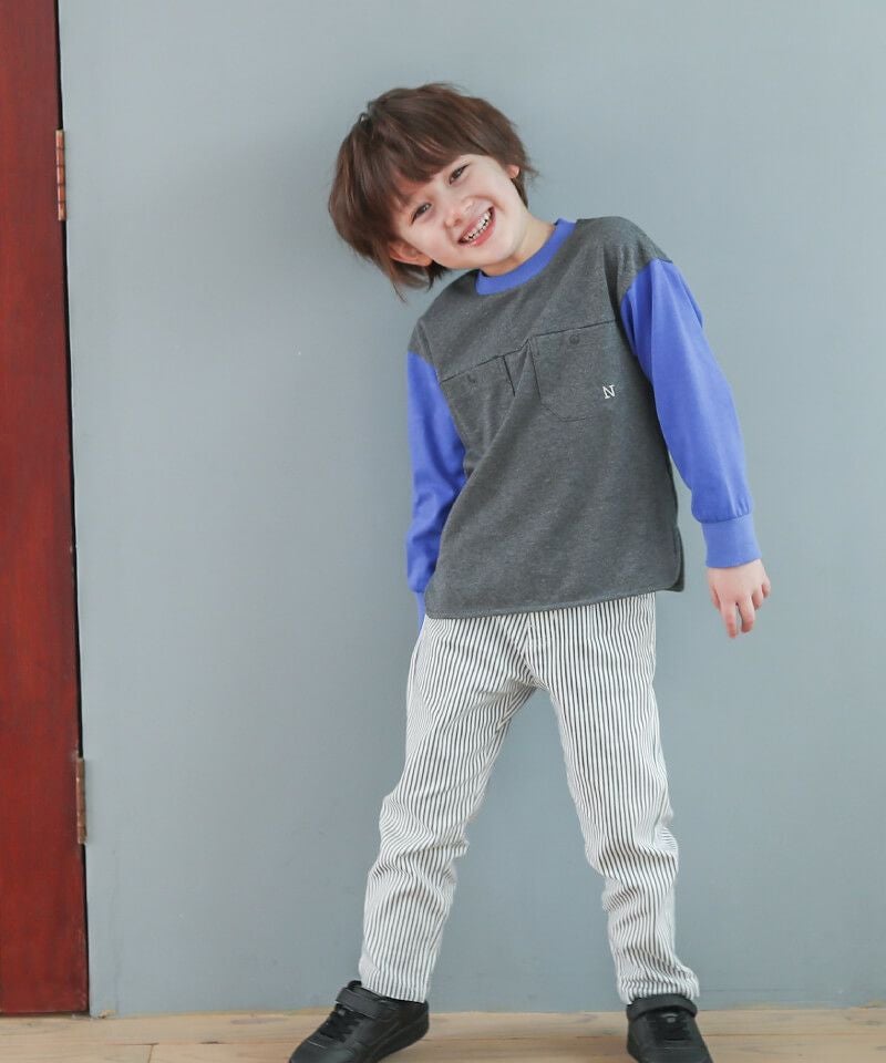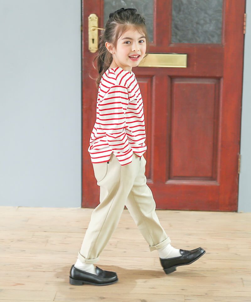 ストライプが合わせやすく、子供がコーディネートを楽しんでいます。