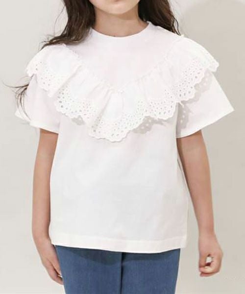 ■ブランド n.o.u.s ■アイテム 半袖Tシャツ ■素材 本体・レース部分/綿100% 衿ぐり部分/綿 95%・ポリウレタン5% 天竺×スパンフライス ■サイズ 80/90/100/110/120/130/140