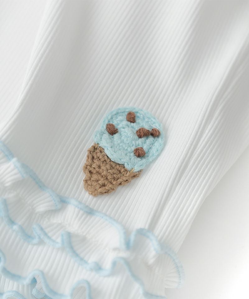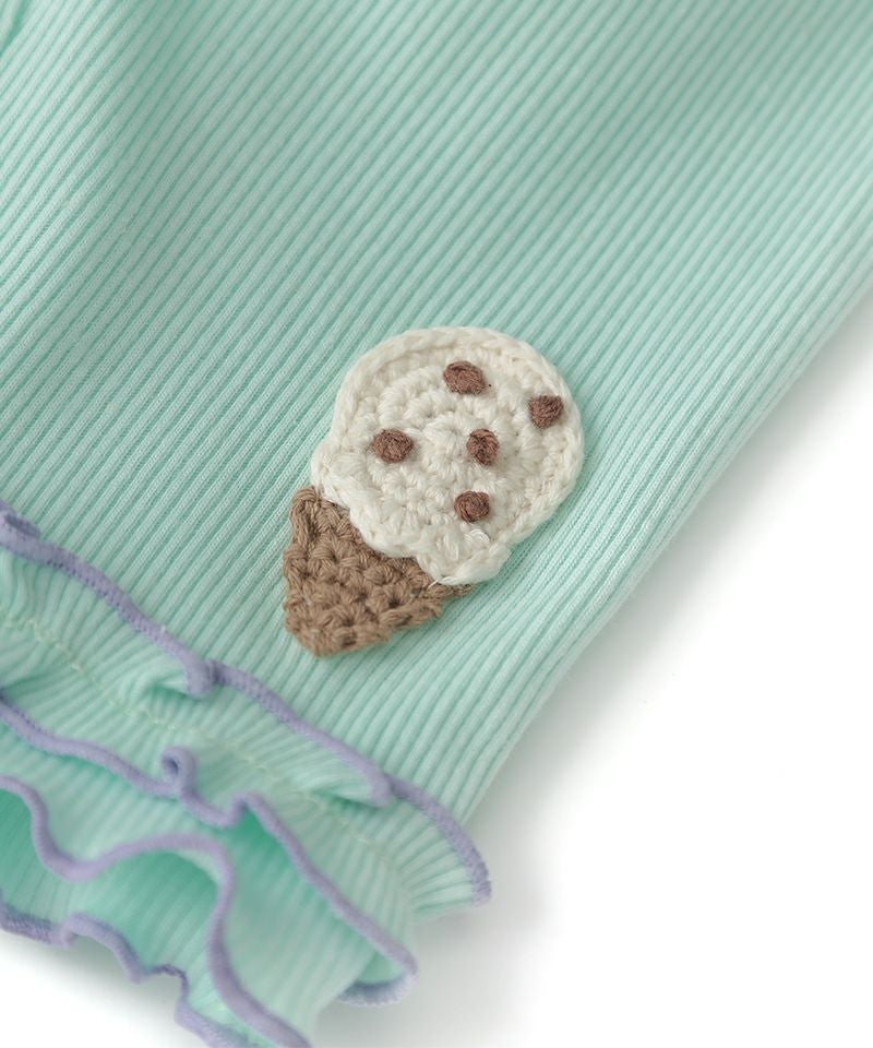 柔らかさとサラッと感をあわせ持つリブテレコをセレクトしました。編みモチーフのアイスやお花♪ちらっと見えた足元が一段と可愛くなるレギンスです♪メロウとのカラーリングが可愛く、カラフルコーデもおすすめなアイテムです☆