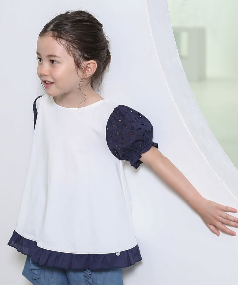 さり気ないレースの透け感やフレアーシルエットが可憐な印象のTシャツです。透け感デザインながらも、コットンレースを使用することで、控えめな上品さが際立ちます。細めのリボンやボートネッツシルエットも素敵★