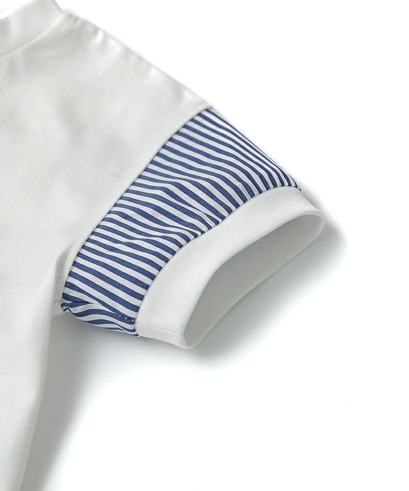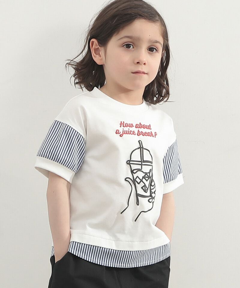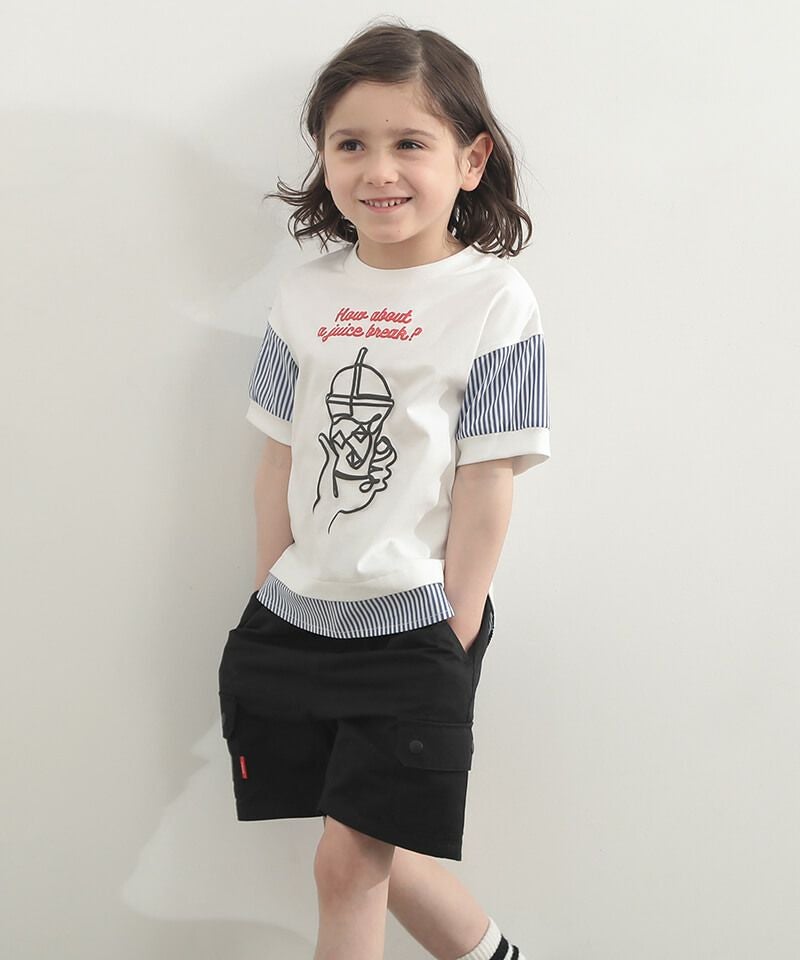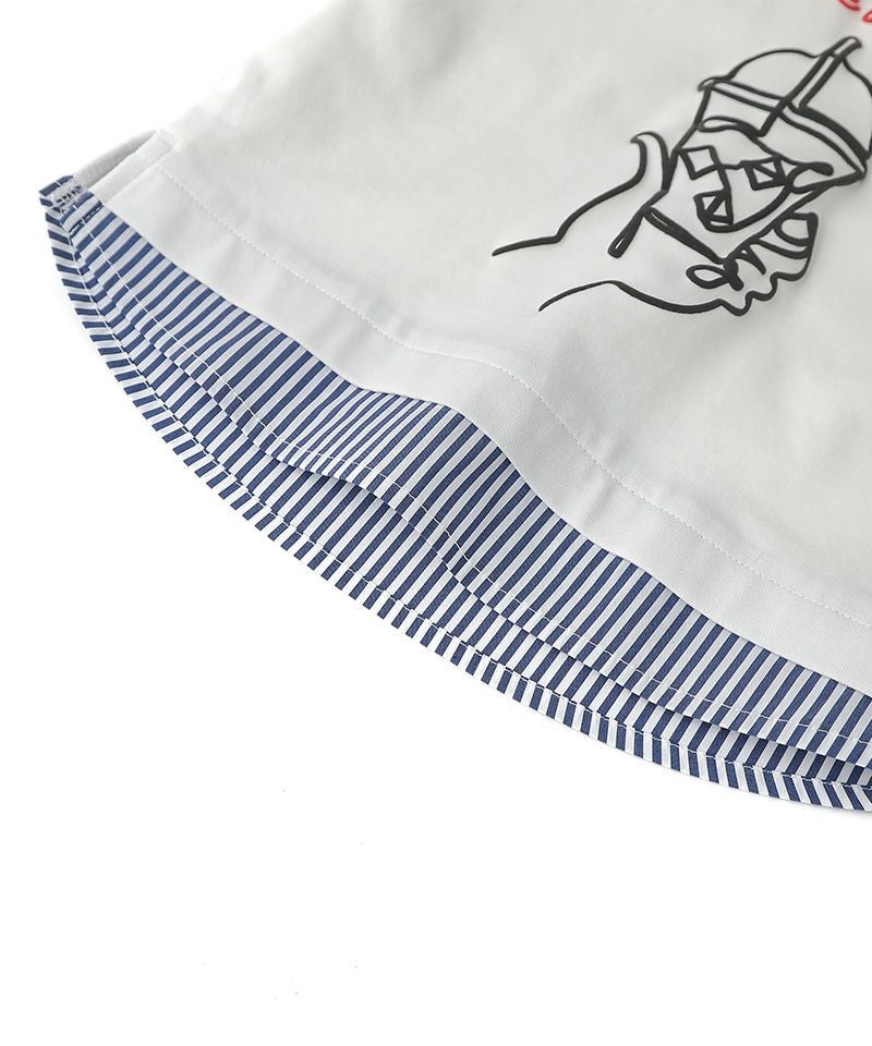 ストライプの異素材スリーブでコーディネートにメリハリがつく1枚です★一筆書きのモチーフがぷっくりした発泡プリントなのも楽しい♪こなれた印象の程よいオーバーサイズ感も素敵です。デニムやジョガーなどのフルレングスはもちろん、夏らしいショートパンツまでバランスが取りやすく、おしゃれコーデに★