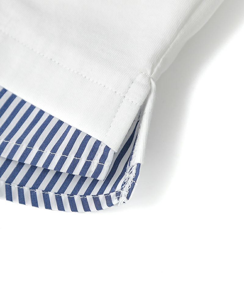 ■素材  本体/綿100% 袖・前後裾切替部分/綿76%・ナイロン21%・ポリウレタン3% 襟・袖口布部分/綿92%・ポリウレタン8%