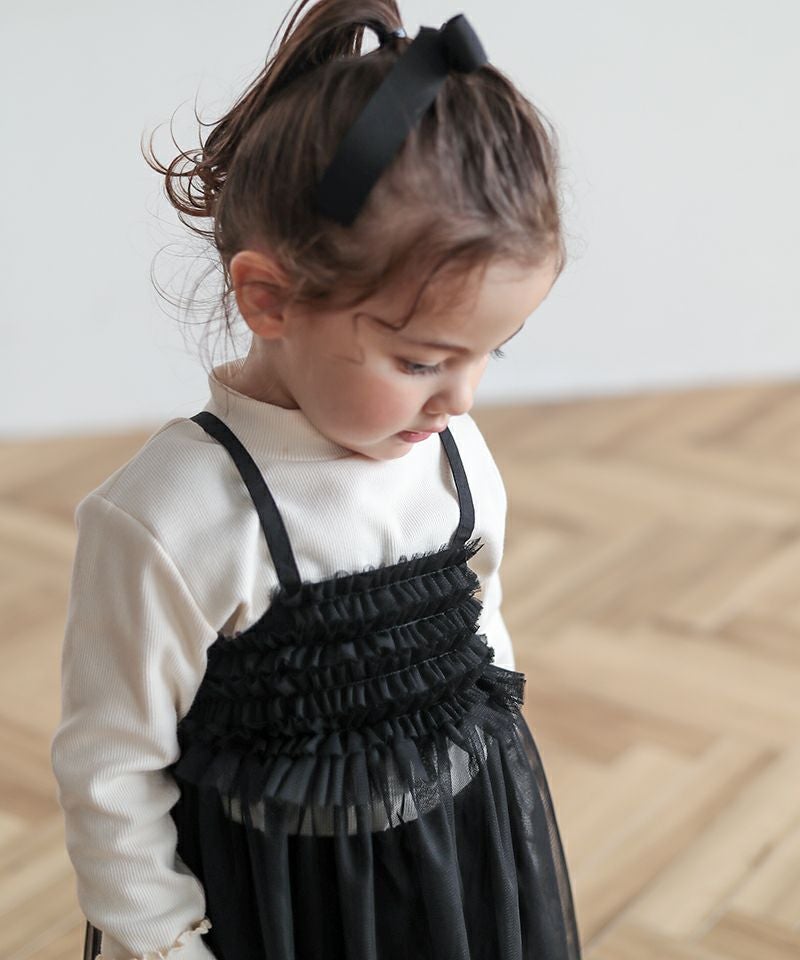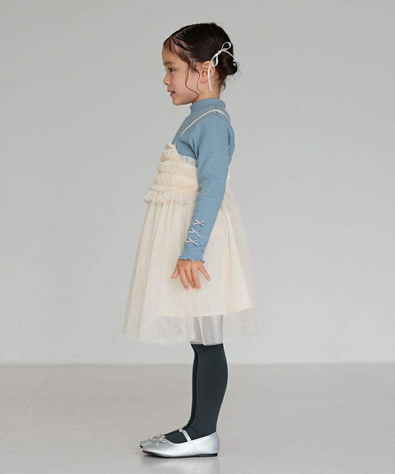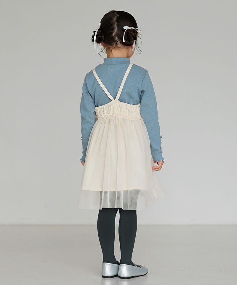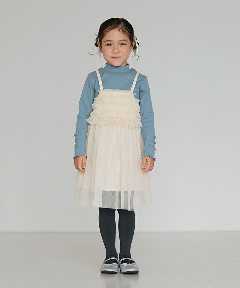 カジュアルなTシャツやロングボトムと合わせたり、タイツ&ニットでお出かけコーデしたり♪色んな着こなしが楽しめるワンピースです。カジュアルボトムと合わせる際は、インナーのスカート無しでチュールの透け感を活かしていただくとおしゃれコーデに☆
