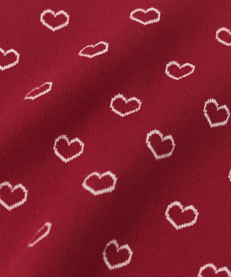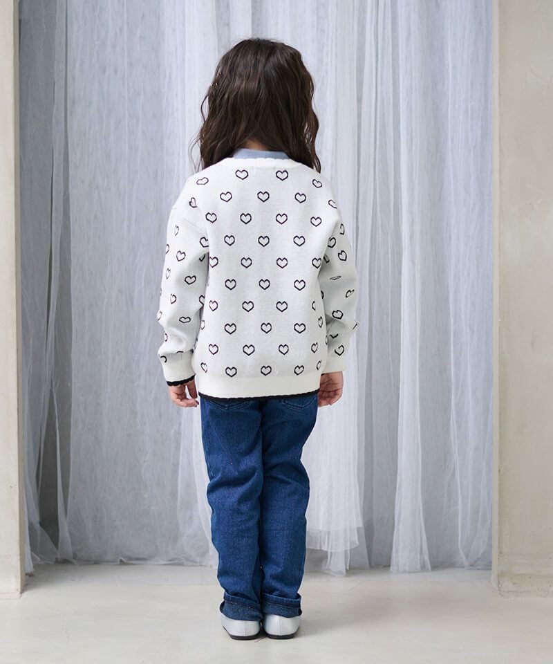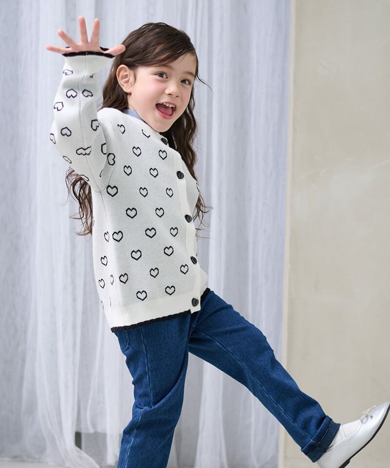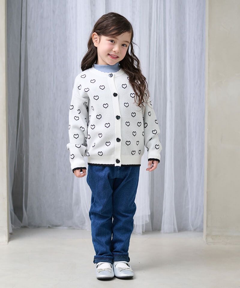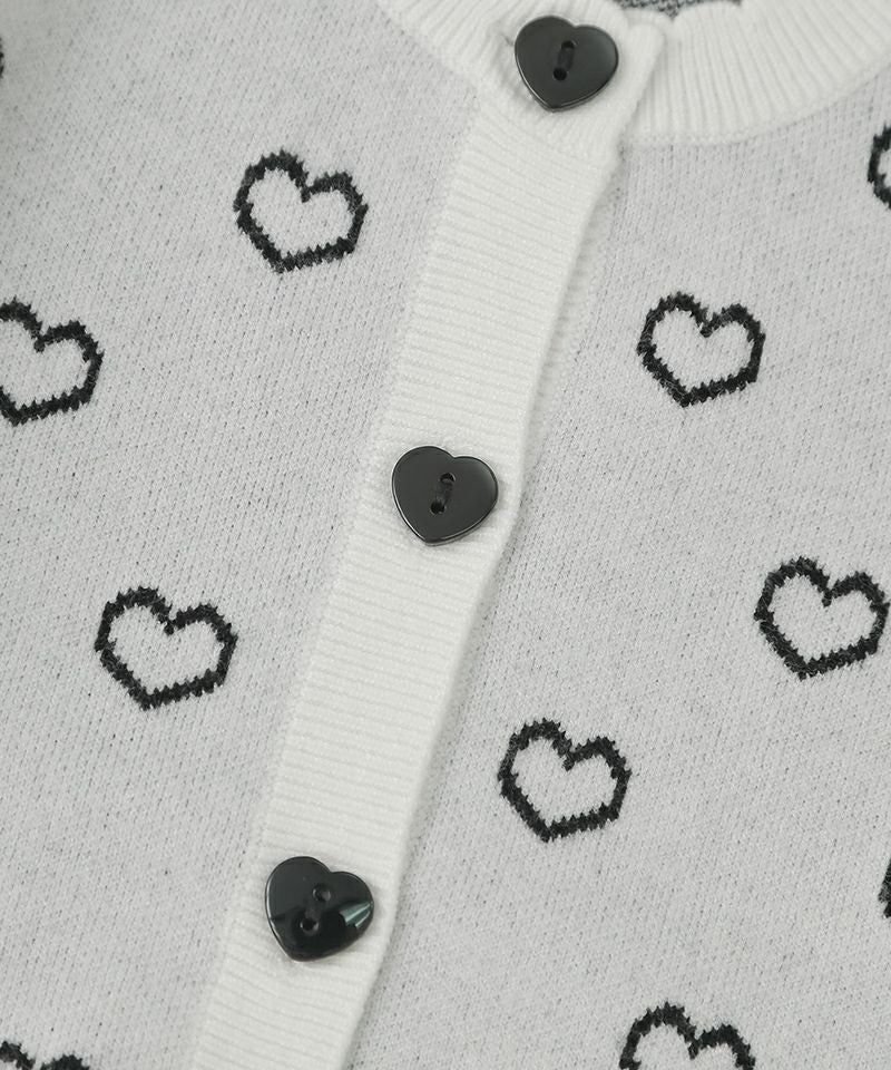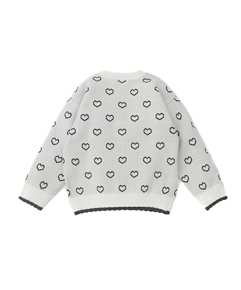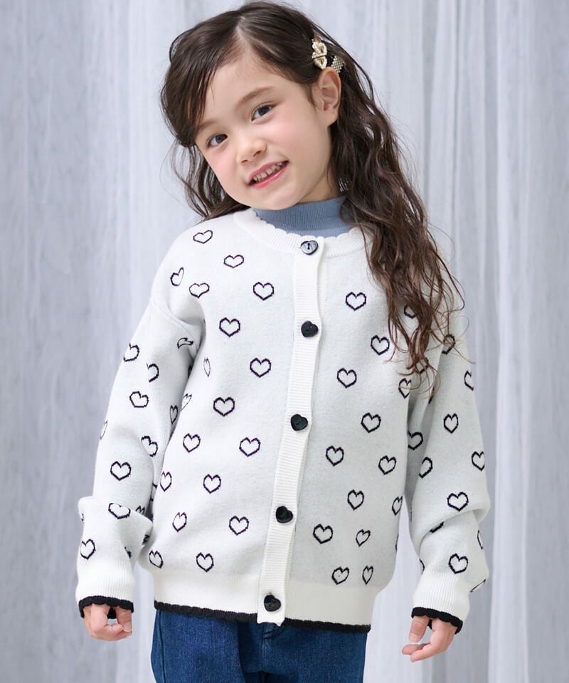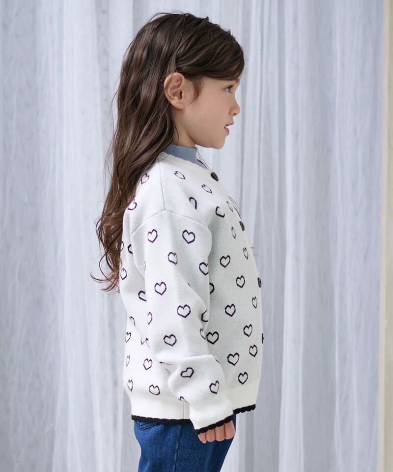 ハートジャガードが愛らしいニットカーディガン☆衿元のスカラップやハート釦など細部も可愛い装飾があり、存在感抜群♪柔らかな質感やマシンウォッシャブル対応なお素材もおすすめしたいポイントです!