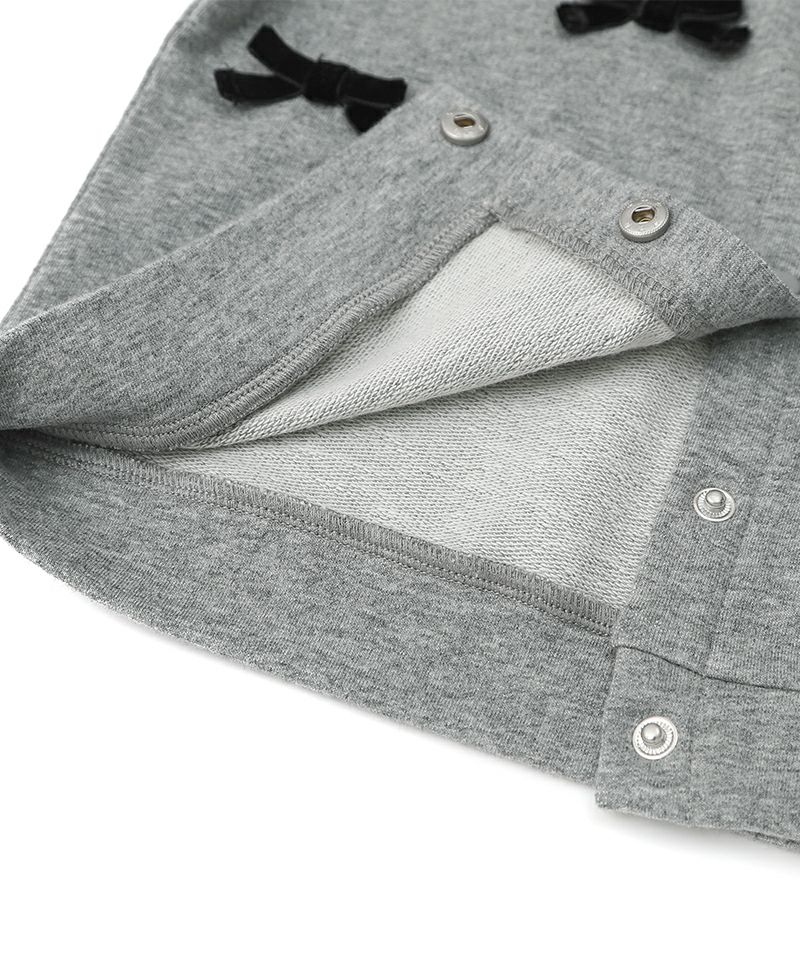 トレンドのたっぷりリボンがキャッチーな1枚。クラシックなムードのブラックベロアリボン、プレッピーなムードのチェック柄リボン、どちらも一味違うコーディネートを楽しめそうです♪本体には伸縮性のあるソフトな裏毛を使用しているのでデイリー使いもし易いアイテムです☆