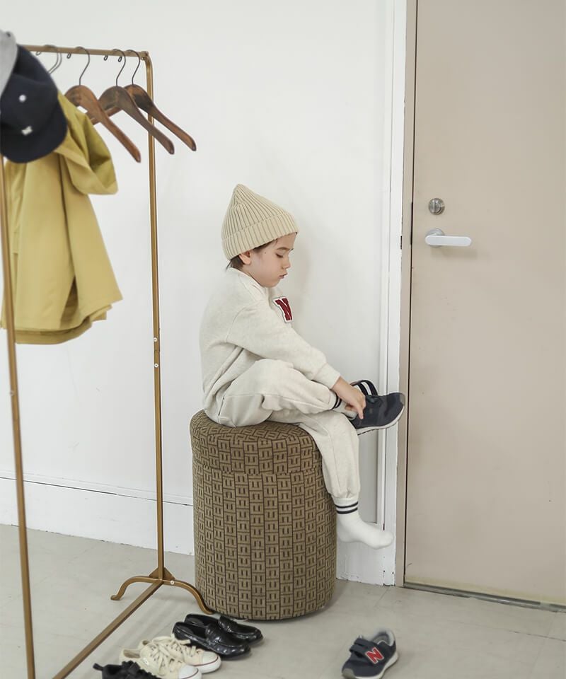 ネイビーブルーを選んでみましたが、明るめの色の服を着せることが多いからか、きゅっとしまってスラっとした感じに見えます。かわいらしいロゴがいいアクセントになっています。