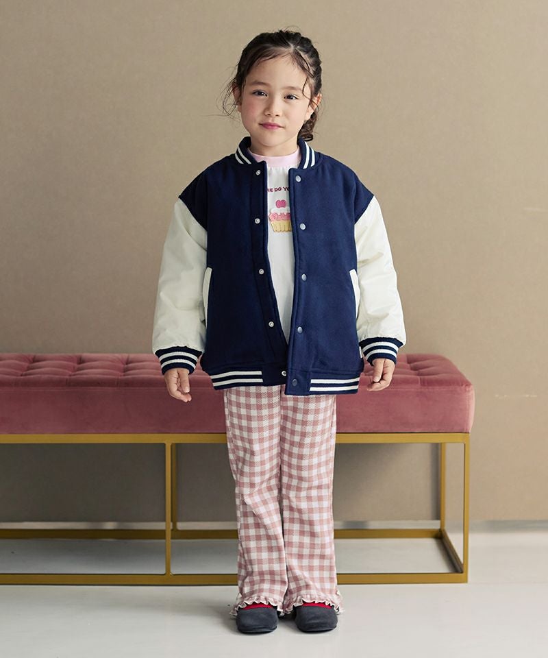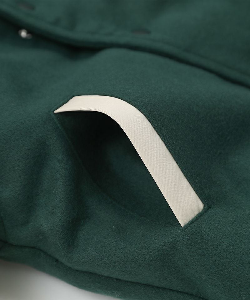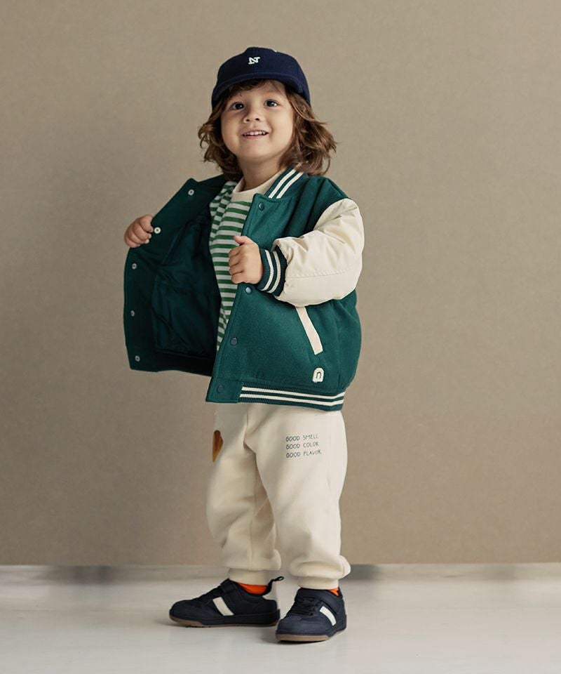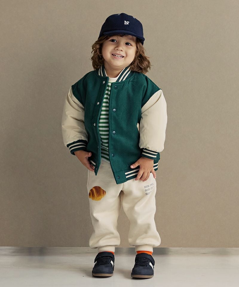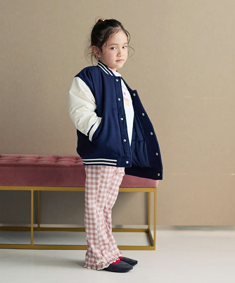 トレンドムードたっぷりなスタジャン☆身頃は上質なフェイクウールを使用し、お袖にはマットなタフタを使用することで、本格スタジャン見えしながらも軽くて動き易いデザインに。全体に蓄熱機能綿を入れているのでしっかりと防寒も出来るジャンパーです。スウェットやデニム、スカートなど合わせる物で印象が変わるのも楽しい1着☆