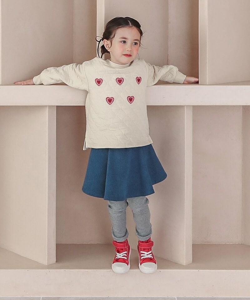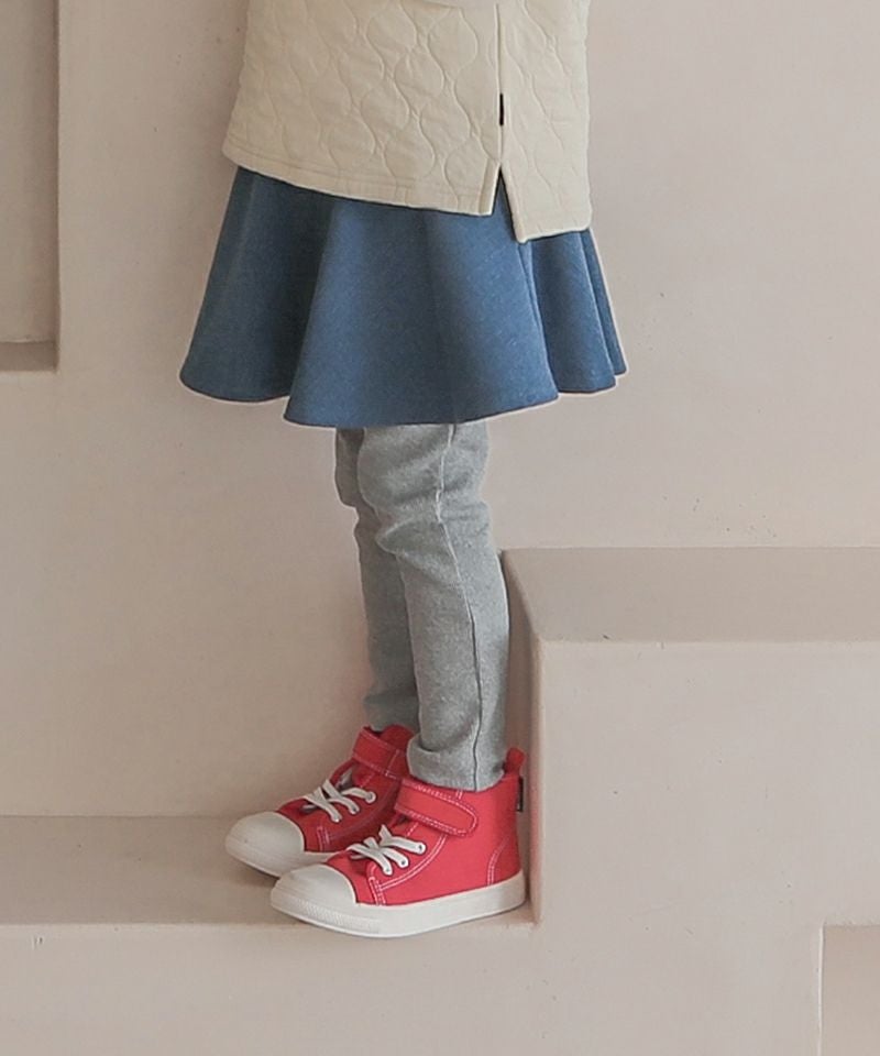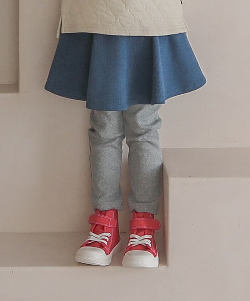 たっぷりのフレアーが愛らしいスカートに、しっかりとした厚みのリブレギンスをドッキング。秋冬でも暖かにスカートコーデを楽しんでいただけるアイテムです☆ニュアンスカラーのレギンスはトップスやソックスとコーディネートしやすく、こなれた印象が素敵です。