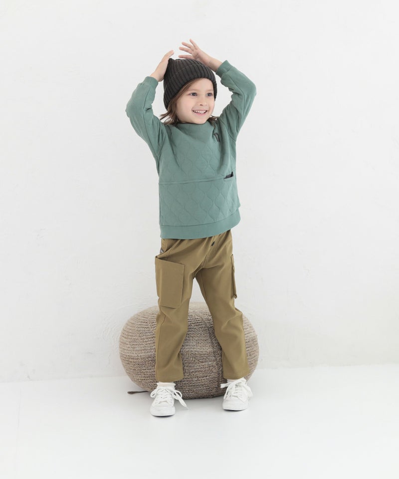 ■カラー展開:クロ/カーキ ※お名前タグ付き ※前にポケットがあります。 モデル身長:114cm / 着用サイズ:110size ※画面上の色はブラウザや設定により、実物とは異なる場合がございます。