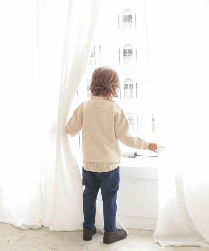 ■カラー展開:ベージュ/ネイビーブルー ※お名前タグ付き ※前と後ろにポケットがあります。 モデル身長:114cm / 着用サイズ:110size ※画面上の色はブラウザや設定により、実物とは異なる場合がございます。