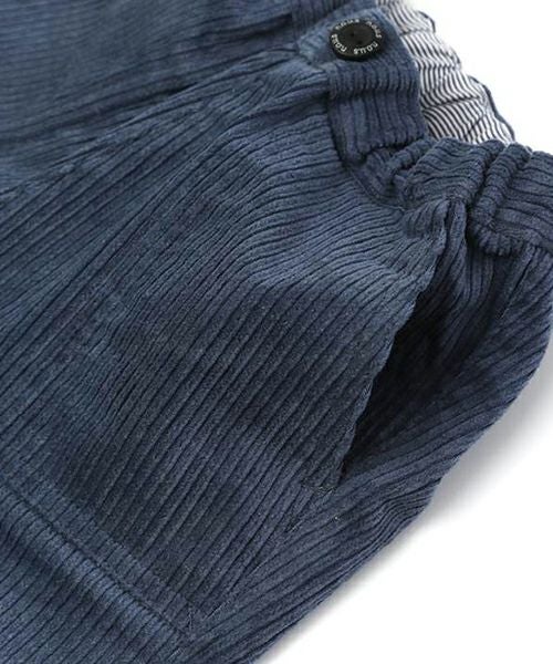 ■ブランド n.o.u.s ■アイテム パンツ ■素材 本体/綿65%・レーヨン28%・再生繊維(セルロース)6%・ポリウレタン1% ストライプ布部分/綿100% 太コール天×ストライプクロス ■サイズ 80/90/100/110/120/130/140