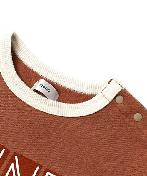 ■ブランド n.o.u.s ■アイテム トレーナー ■素材 本体/綿59%・ポリエステル41% 衿ぐり・袖口布部分/綿95%・ポリウレタン5% 裾見返し布部分/綿100% 起毛裏毛×スパンテレコ×薄手天竺 ■サイズ 80/90/100/110/120/130/140